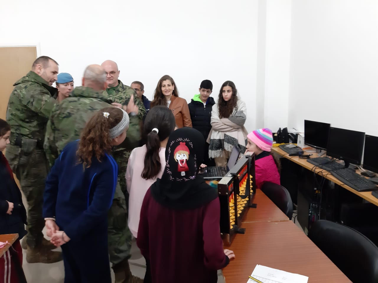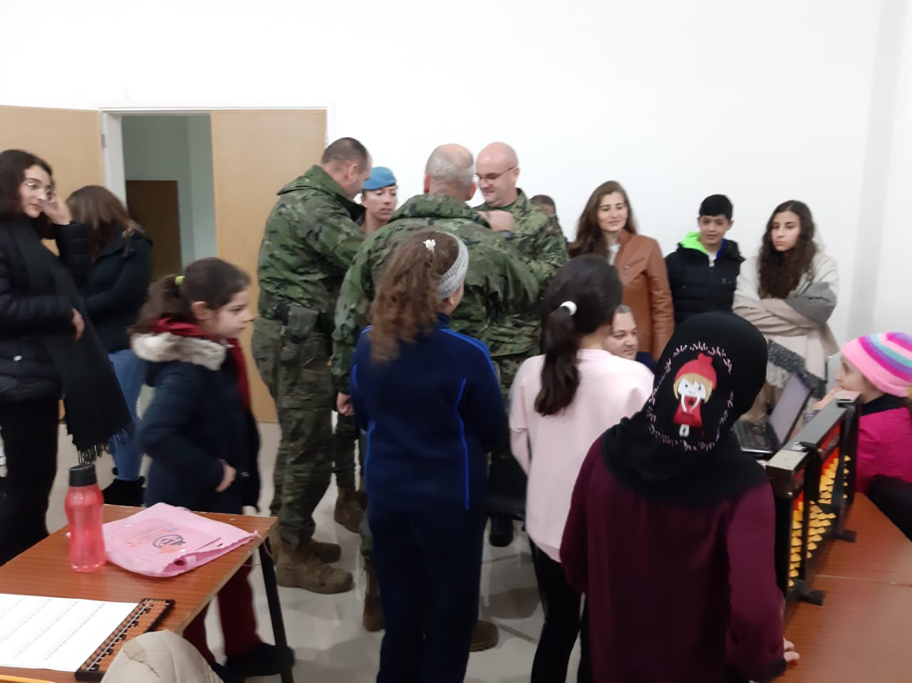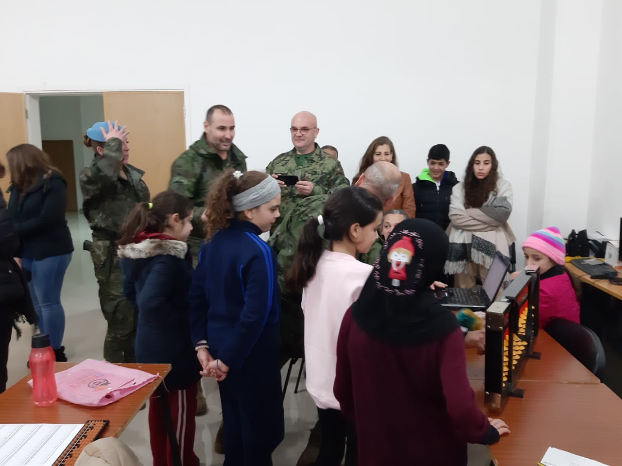 جرى ذلك بحضور النقيب لويس المسؤول الجديد في الشؤون المدنية، حيث تم عرض بعض الأنشطة من صف الحساب الذهني وصف الموسيقى حيث أبهرت مواهب الطلاب افراد الكتيبة على ان يتم الاتفاق لاحقاً على اقامة أنشطة تربوية وتثقيفية للطلاب بالتعاون مع الكتيبة الاسبانية.