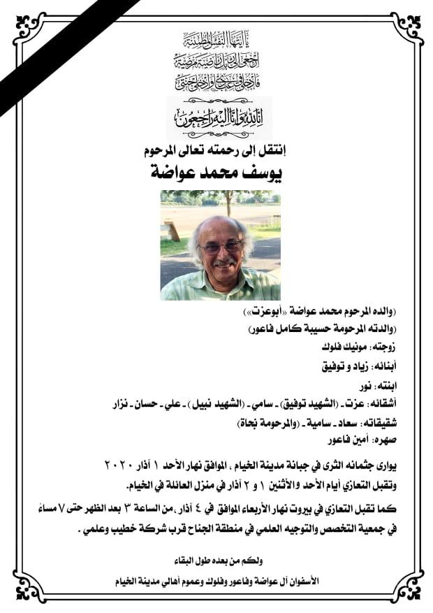 إنتقل إلى رحمته تعالى المأسوف عليه يوسف محمد عواضة (أبو زياد)