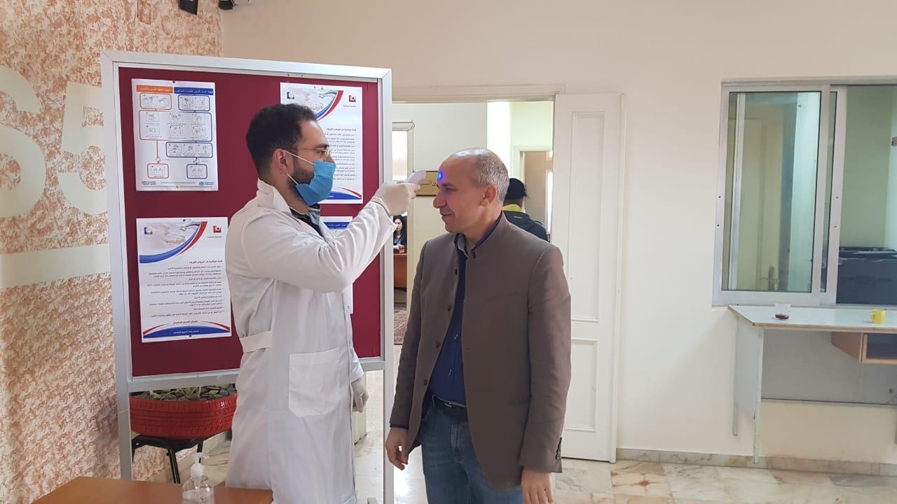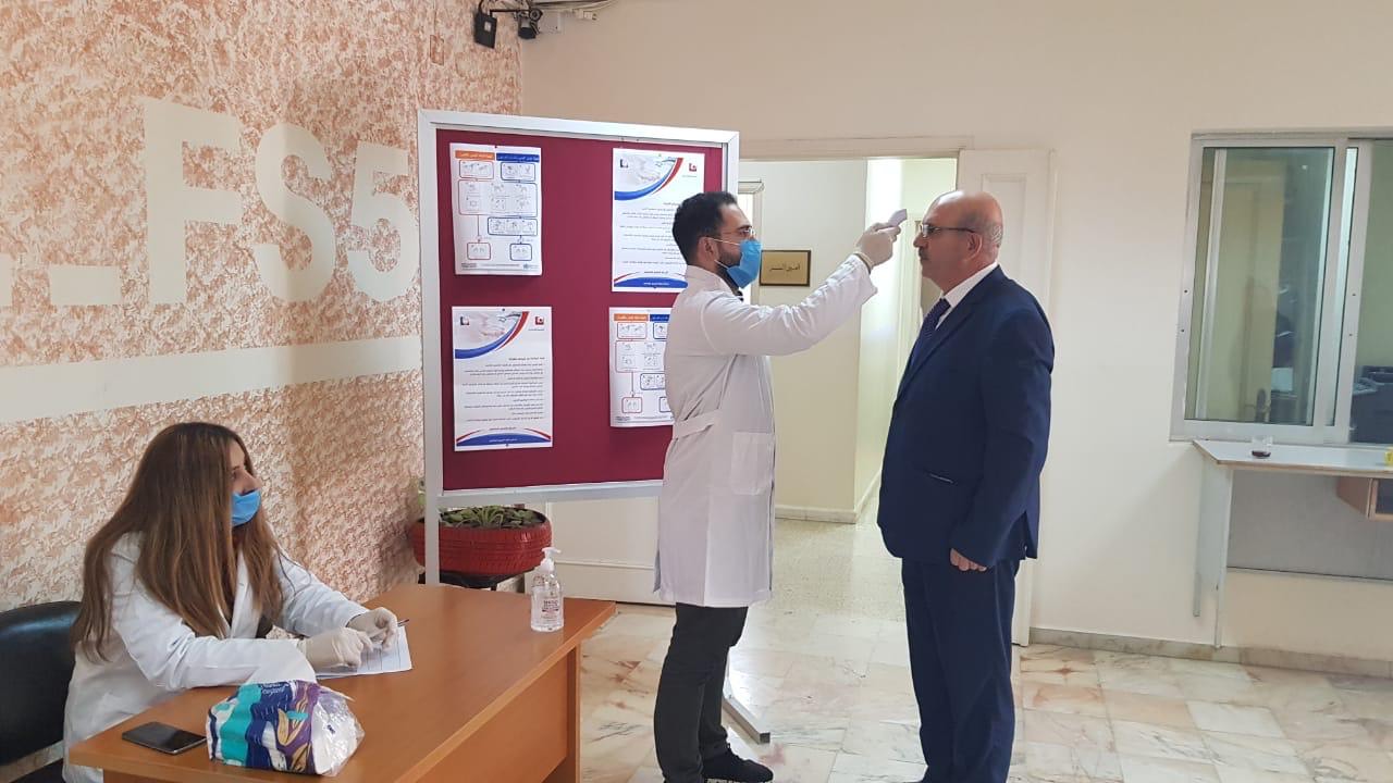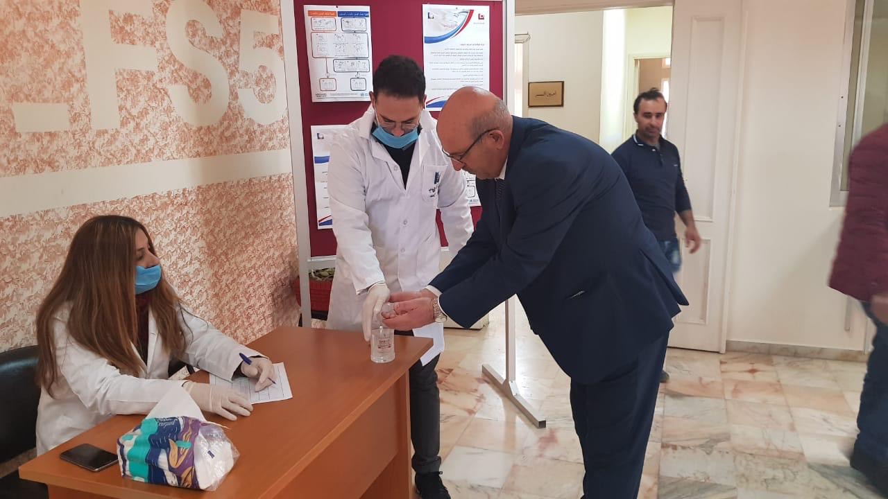 وتنفيذاً لتعاميم رئاسة الجامعة اللبنانية بشأن اتخاذ تدابير للوقاية من انتشار فيروس كورونا، بادرت كلية العلوم الفرع-الخامس في النبطية الى تجهيز وحدة خاصة من موظفي الكلية مهمتها قياس حرارة جميع العاملين في الفرع من موظفين واداريين واساتذة بالإضافة الى الزائرين و تعقيم آلة البصم وتعقيم اليدين قبل وبعد البصم، والاشراف على تعقيم المكاتب والحمامات والمختبرات وقاعات التدريس وذلك ضمن الامكانات المتاحة.