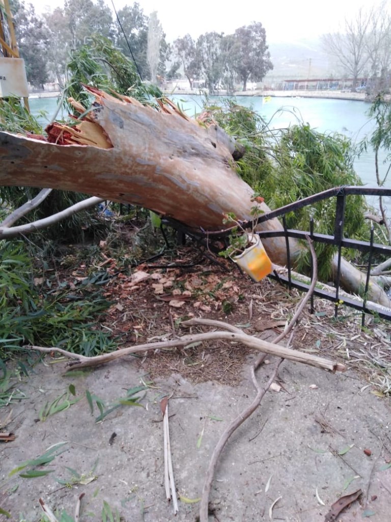 الرياح القوية تسببت في تكسر اشجار السرو المعمرة في مرجعيون