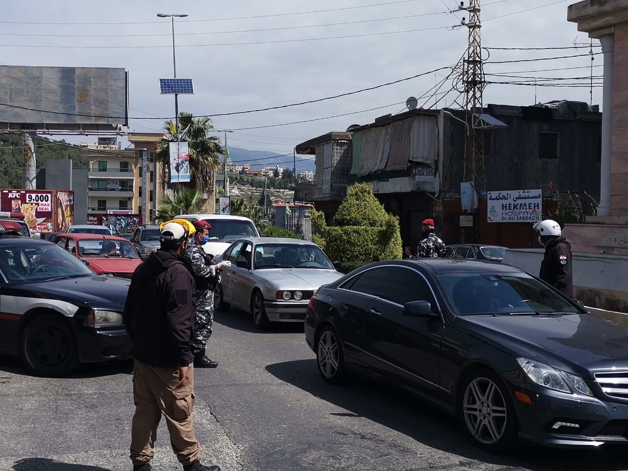 واصلت قوى الامن الداخلي وشرطة بلدية النبطية اتخاذ اجراءاتها المشددة للحد من الازدحام والتجمعات التي شهدتها النبطية منذ بداية هذا الشهر والناتجة عن توافد المواطنين لقبض رواتبهم وسحب إيداعات لهم من البنوك الامر الذي مازال يتسبب بازدحام في شوارع المدينة