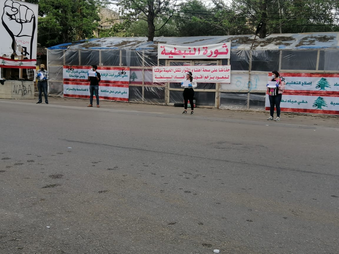 نفذ عدد من حراك النبطية وقفة إحتجاجية عصر اليوم أمام خيمة الحراك قرب السراي الحكومي رفضا لسياسة رفع الدولار الذي لامس الـ٣٧٠٠ ليرة اليوم،