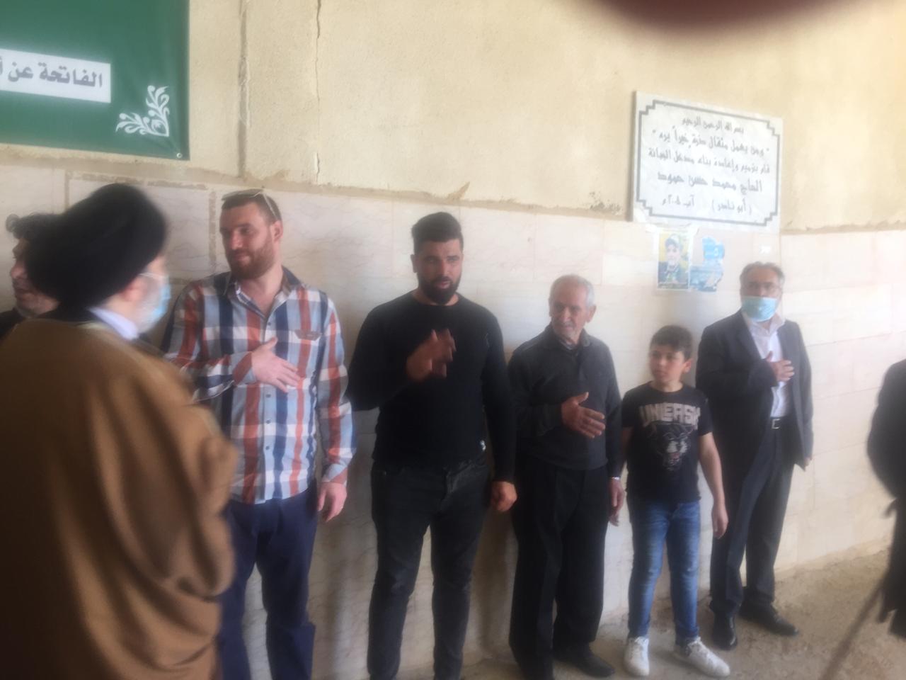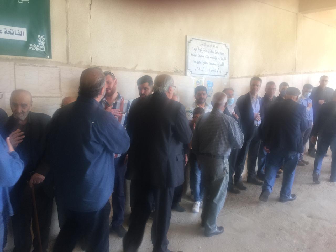 وبعد ذلك اصطف الأهل لتقبل واجبات العزاء يتقدمهم نجله (حسن)، وشقيقه مهندس المساحة (علي نصرات)، وعمّاهُ، ثم خاله الحاج أبو خليل، وأصهرة الفقيد، وسائر الأقارب من أبناء أخواته وأعمامه وعماته، وخالته، وأخواله. ثم تقدم بالعزاء جموع أهالي مدنية الخيام من ضمنهم الفعاليات العائلية والاجتماعية، وكوكبة رائدة من من جيل معلمي الخيام في الخمسين سنة الأخيرة، ومخاتير البلدة، فكان عزاء شعبيا حافلا بمحبيّ الفقيد الغالي على قلوب كل من حضر التشييع، والذي خلا من المظاهر الرسمية المصطنعة، والهيئات الحزبية والبلدية (ما عدا الأقارب المباشرين).