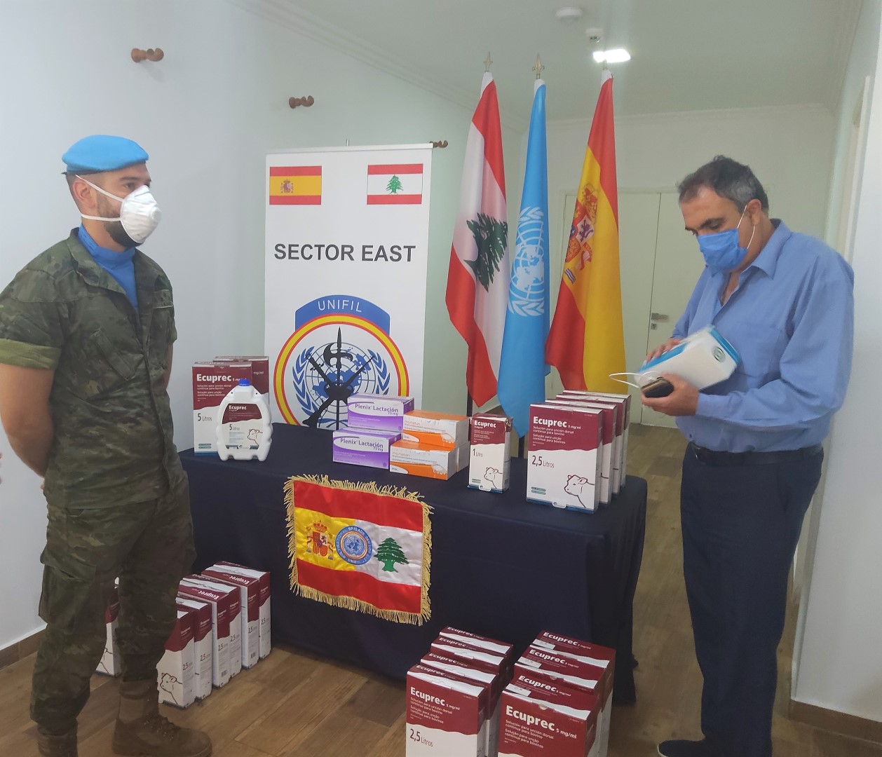 قدّمت الكتيبة الاسبانية، التابعة لقوات اليونيفيل، أكثر من سبعة أنواع من الأدوية البيطرية إلى اتحاد بلديات العرقوب واتحاد بلديات جبل عامل في جنوب لبنان ، والأدوية المقدمة هي أدوية بيطرية وقائية واحتياطية للثروة الحيوانية ، تشمل كبسولات التخلص من الديدان ، ومضاد للحشرات،أدوية لمكافحة الطفيليات الخارجية مثل القراد والبراغيث، المقويات الهضمية، المكملات المعدنية ومكملات الأعلاف.