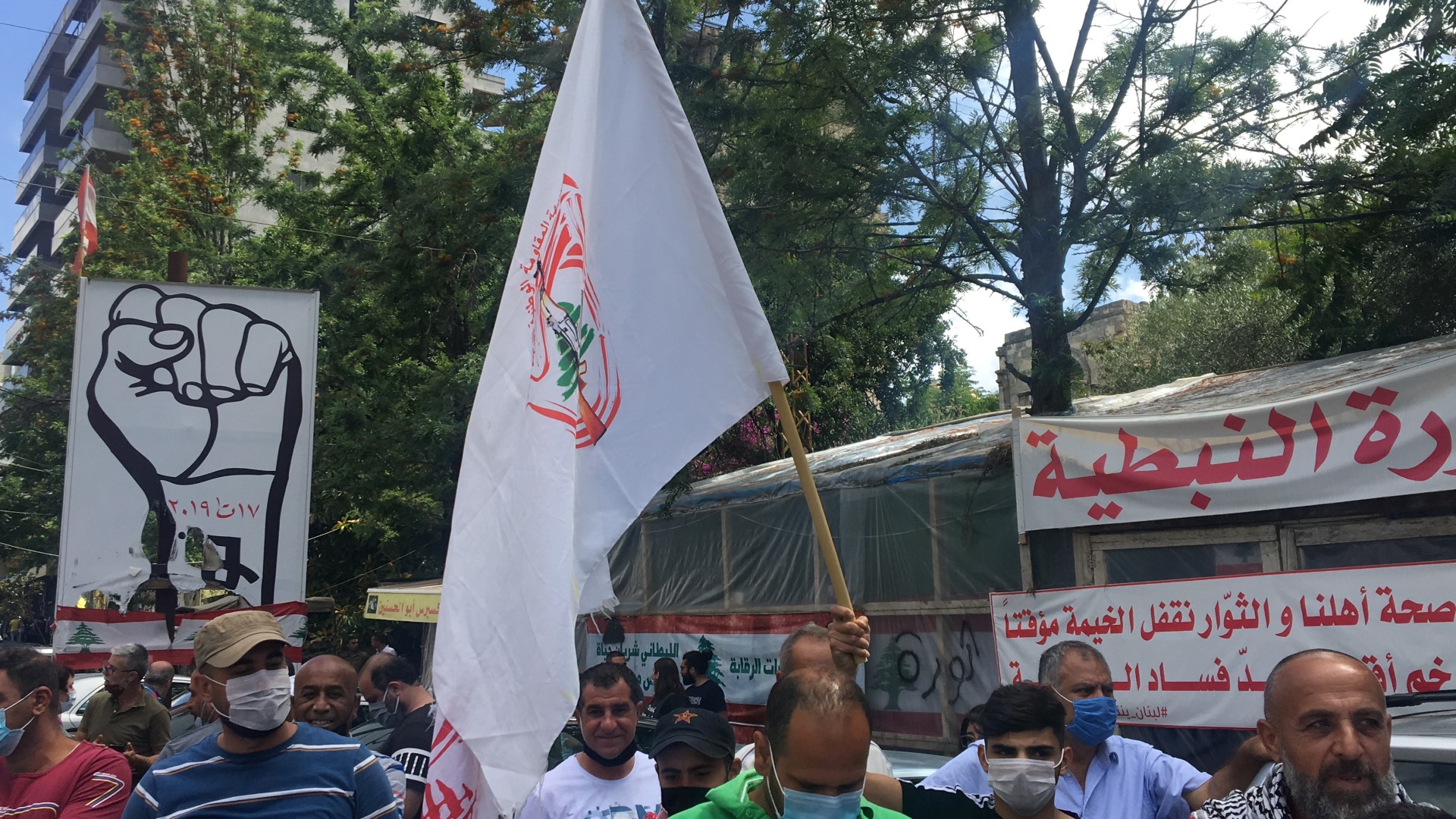 وحمل المحتجون اعلام جبهة المقاومة اللبنانية اضافة الى يافطات كتب على بعضها العفو عن العملاء اغتيال ثان لشهداء الوطن والمقاومة ، وصلتم الى السلطة بفضل العفو عن مجرمي الحرب الاهلية ، الخيانة والعمالة ليست وجهة نظر "، وتحدث عضو اللجنة المركزية للحزب الشيوعي اللبناني الدكتور علي الحاج علي فقال لا أتفاجأ باقرار هكذا نوع من القرارات ومنها قرار عودة العملاء من اسرائيل وكأسير سابق سوف نتعامل مع العملاء كما تعاملنا مع العدو الصهيوني من خلال المقاومة والتصدي لهم لان من تنكر لشعبه وبلده ووطنه ليس من الصعب عليه ان يتنكر للمناضلين والشهداء الذين قدموا دمائهم وضحوا لتحرير الارض ،حذاري ثم حذاري اقرار هذا القانون اليوم لاننا سنتعامل معه كما تعاملنا مع الكيان الصهيوني والجيش الاسرائيلي خلال الاحتلال للجنوب وما قبل التحرير ورصاصات المقاومة الوطنية ستكون لهم بالمرصاد ، عيب ثم عيب على مجلس النوابي وعلى هذه الطبقة السياسية ان تقر هكذا نوع من القوانين .