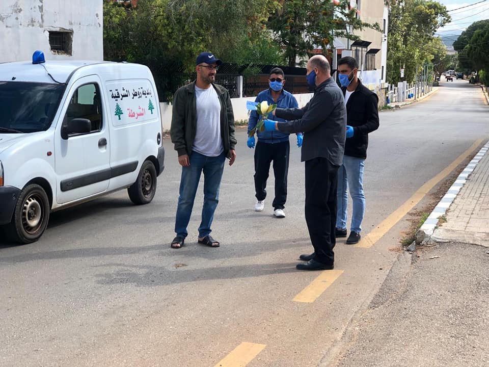 وقام رئيس البلدية الدكتور وسيم اسماعيل ونائبه المهندس شوقي حرب بمشاركة عناصر شرطة البلدية بجولة على عدد من المحال ايضا وتوزيع الورود والكمامات على اصحابها اضافة الى المواطنين.