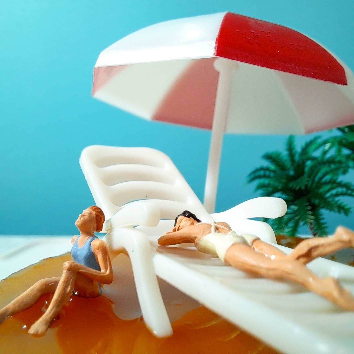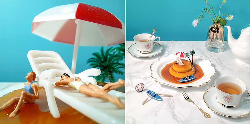 س: يبدو هذا المشهد الصيفي المصغر وكأنما تم التقاطه في إحدى الوجهات الاستوائية. ولكن ما هي الحلوى التي تم تقديمها لجلسة الشاي لتحاكي الشاطئ الرملي الذهبي؟