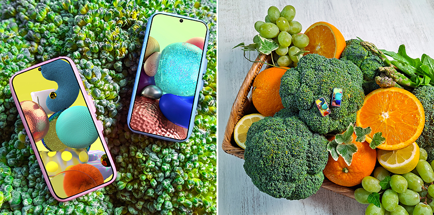 عد لمشاهدة الأجهزة المصغرة لهاتفي Galaxy A51 و A71 بالمقارنة مع نظيراتها بالحجم الكامل في الصورة أعلاه. الصورة رائعة أليس كذلك؟ تعد عدسة الماكرو الأداة المثالية لإنشاء سيناريوهات يمكن أن تفاجأك.