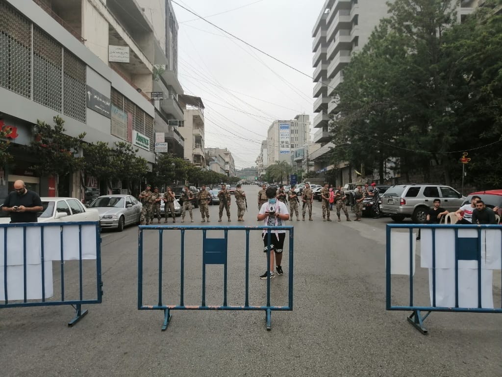 ثم قطع المشاركون الطريق بين السرايا والسوق التجاري بالعوائق الحديدية وافترشوا الارض، وسط اجراءات أمنية اتخذتها وحدات من الجيش في المحيط.