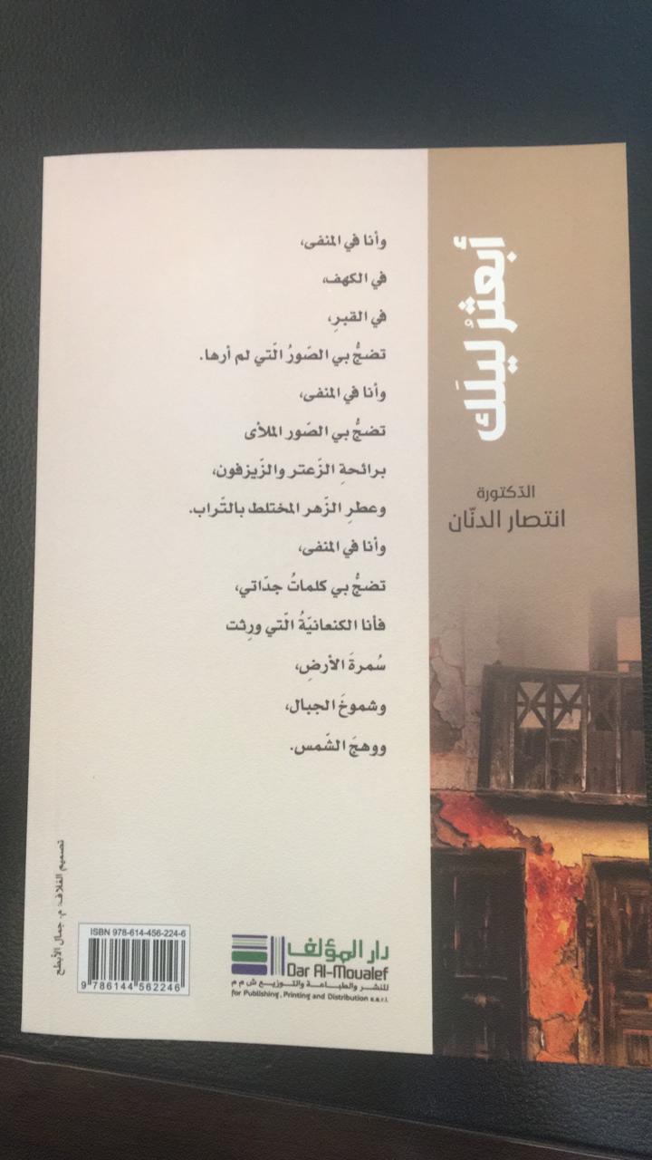 صدر ديوان جديد للشاعرة والأديبة الدكتورة انتصار خضر الدنان، بعنوان "أبعثر ليلك" صادر عن دار المؤلف. تصميم الغلاف والإخراج الداخلي، تنفيذ الرسام الأستاذ جمال الأبطح.