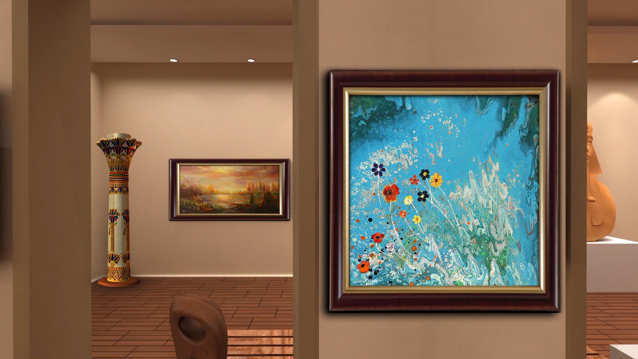 واضافت"احببت ان أعطي طاقة ايجابية في زمن الأزمات والسلبيات وأمنح المشاهد فرصة مشاهدة الاعمال وكأنه يزور معرضا حقيقيا" .