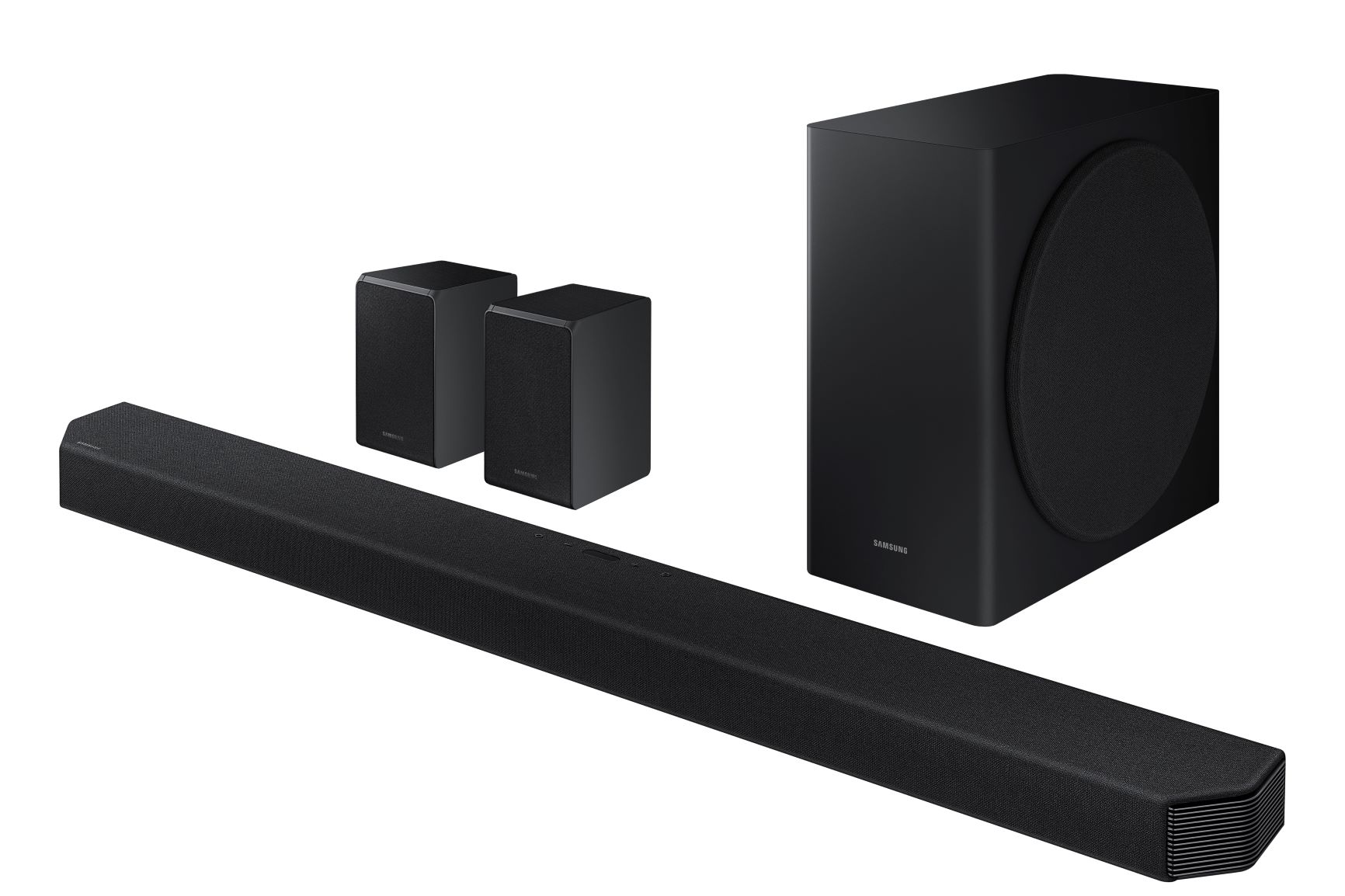 يوفر طراز HW-Q950T جودة صوت بـ 9.1.4 قناة، والذي يعتبر الحد الأقصى لعدد القنوات المُتاح حالياً في مكبر صوت واحد، ويشتمل النموذج الجديد على صوت بجودة وأداء فائقين مع اثنين من مكبرات الصوت الخلفية اللاسلكية. ومُقارنةً بأنظمة سامسونج السابقة ذات 7.1.4 قناة، يشهد هذا النموذج إضافة مكبرات صوت إضافية على اليمين واليسار، ما يعزز إخراج الصوت للتعبير عن الحركة على الشاشة بطريقة أكثر واقعية، لتجربة غامرة من المستوى التالي.