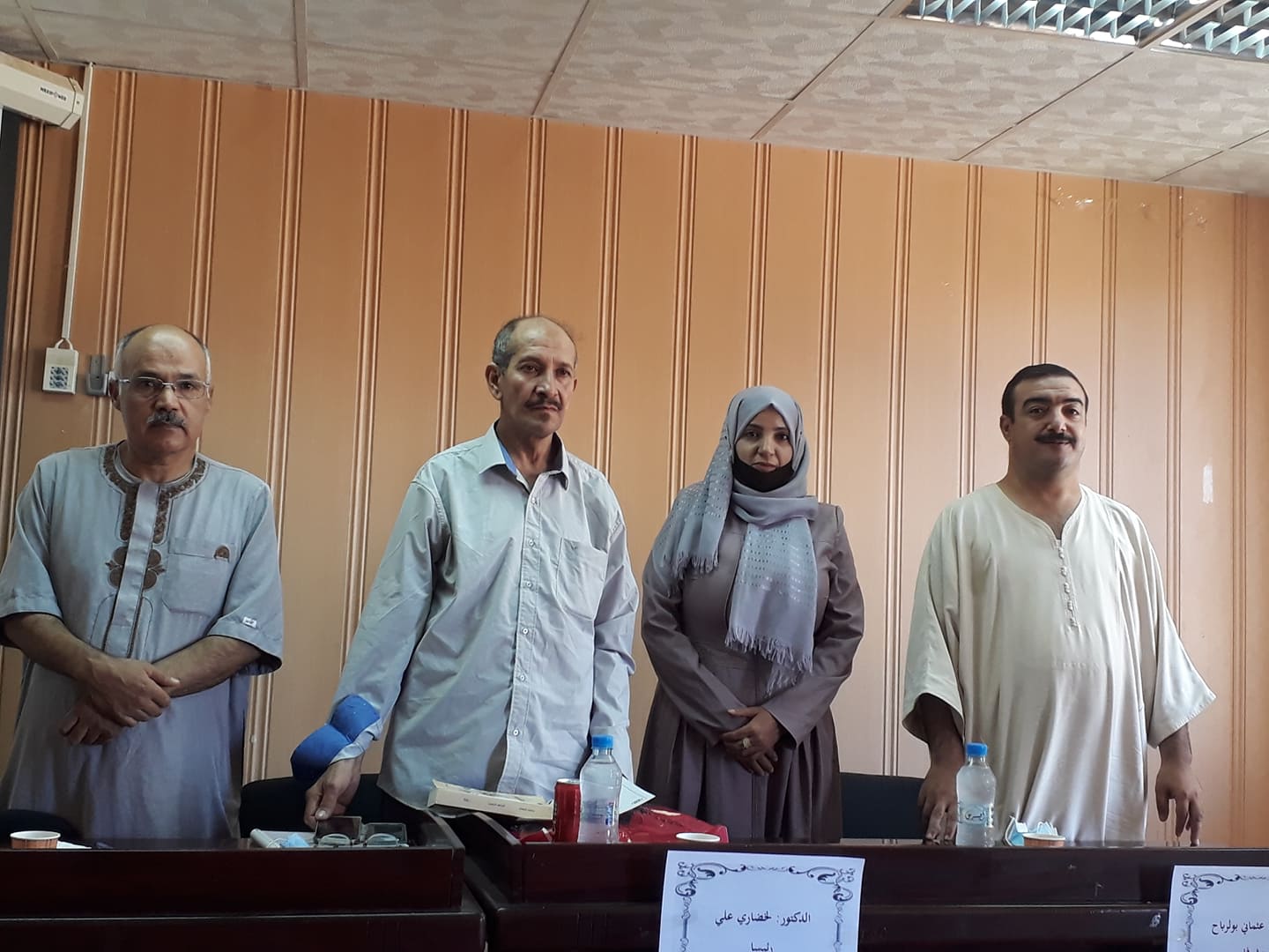 وتكوّنت لجنة مناقشة رسالة الماستر من كلّ من: د. علي الخضاري رئيساً، ود. بولرباح عثماني مشرفاً ومقرّراً، ود. عطاء الله كريبع مناقشاً.