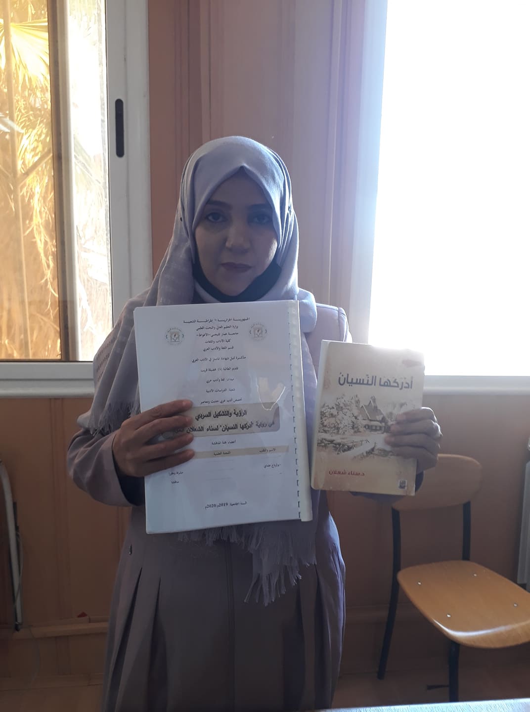 ناقشت الباحثة الجزائريّة فضيلة قريب رسالة الماستر الخاصّة بها في الأدب العربيّ الحديث في قسم كلية اللغة العربية والأدب العربيّ في جامع عمّار ثليجيّ في الجزائر، وهي بعنوان "الرّؤية والتّشكيل السّرديّ في رواية أدركها النّسيان لسناء الشعلان أنموذجاً".