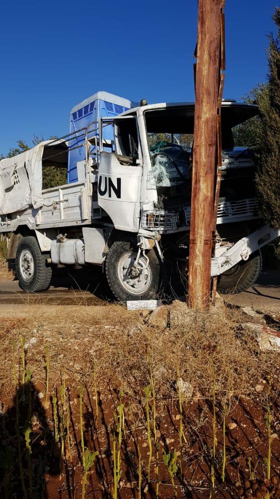 إنحرفت آلية تابعة لقوات الطوارئ الدولية -الكتيبة النيبالية واصطدمت بعامود كهربائي في بلدة بليدا-قضاء مرجعيون محلة سهلة البركة وقد أصيب 4 من عناصرها برضوض وجروح نقلوا على اثرها الى مستشفى ميس الجبل الحكومي لتلقي العلاج .