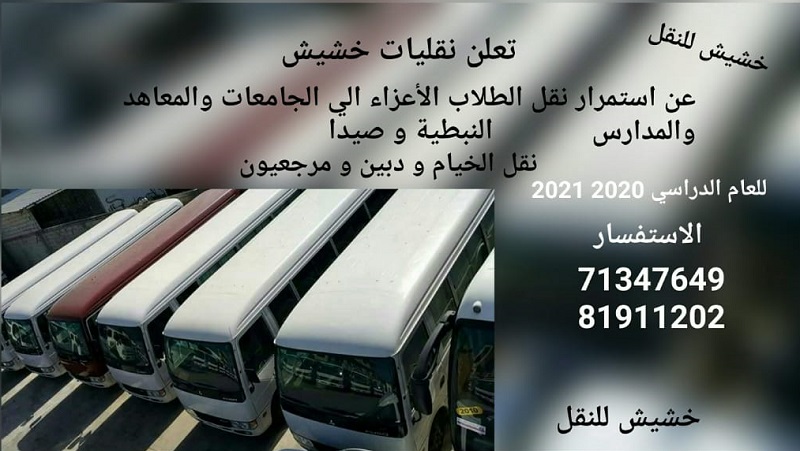 مع إقتراب العام الدراسي، وفي سبيل تسهيل انتقال الطلاب من المنطقة إلى مدارسهم ومعاهدهم وجامعاتهم في مدينة النبطية، أعلنت "نقليات خشيش" عن استمرار توفير خدمة النقل للطلاب والتلامذة من الخيام (مروراً ببلدة دبين وبجديدة مرجعيون) وصولاً إلا مدرسهم وجامعاتهم في النبطية وبالعكس.