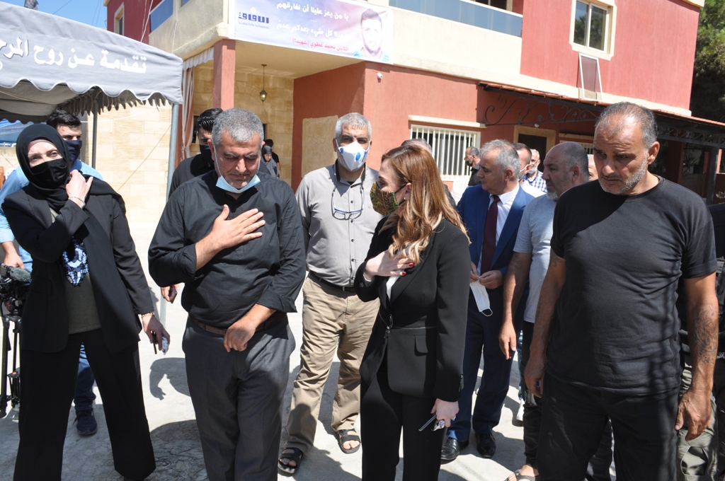 وقدمت الوزيرة اوهانيان التعازي لذووي الشهيد عطوي بحضور فعاليات حزبية واجتماعية من بلدة حاروف الجنوبية .