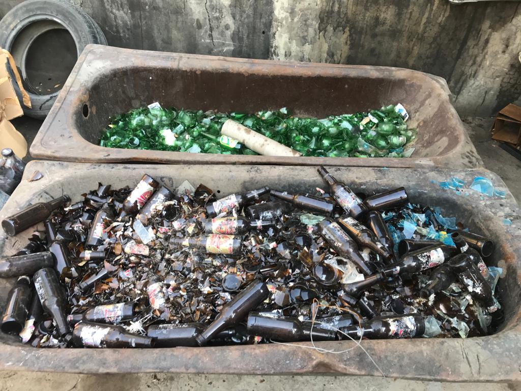 ونحن لا نُصنّع زجاج، بل إعادة التدوير من الكسر المتلوف الذي نحصل عليه من عدة مصادر، بحيث أن الزجاج الخام الذي يستخرج مباشرة من رمل البحر يُصنّع عبر معامل ومعدات خاصة، ويكون لونه صافي نقي جدًا.