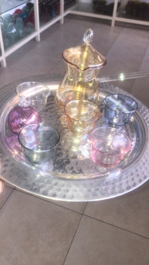 ونحن نُنتج كل ما يلزم من أواني زجاجية للمطاعم والفنادق والأعراس وللشمع والورود وأول قربانة وثريات ولمباديرات وكلوبات ومزهريات وأقداح وقناني مختلفة وقناديل وأرتيزانا بعدة ألوان، وباتت مطلب العديد من الزبائن، والسواح والأجانب.