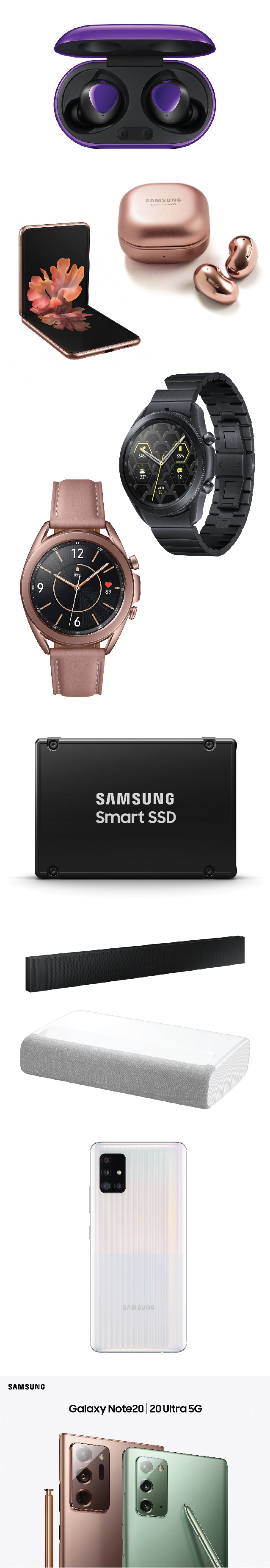 وفي هذا العام كان هاتف "Galaxy Note20 5G/Ultra 5G" وسماعة "Galaxy Buds+ BTS" من بين المنتجات الفائزة في أفضل جوائز الابتكار. وشملت منتجات سامسونج الحائزة على جوائز في حفل التكريم فئات عدة، بما في ذلك إمكانية الحصول عليها، وملحقات الكمبيوتر، وأجهزة الكمبيوتر وملحقاته، والتصوير الرقمي / التصوير الفوتوغرافي، والتقنيات المدمجة، واللياقة والرياضة، والألعاب، وسماعات الرأس وأجهزة الصوت الشخصية، والصحة والسلامة، والأجهزة المنزلية، وأجهزة الصوت والفيديو المنزلية وملحقاتها، والأجهزة المحمولة وملحقاتها، وأجهزة المنزل الذكي، وبرامج وتطبيقات الهاتف المحمول، وأجهزة البث، والاستدامة، والأجهزة القابلة للارتداء، والشاشات المرئية.