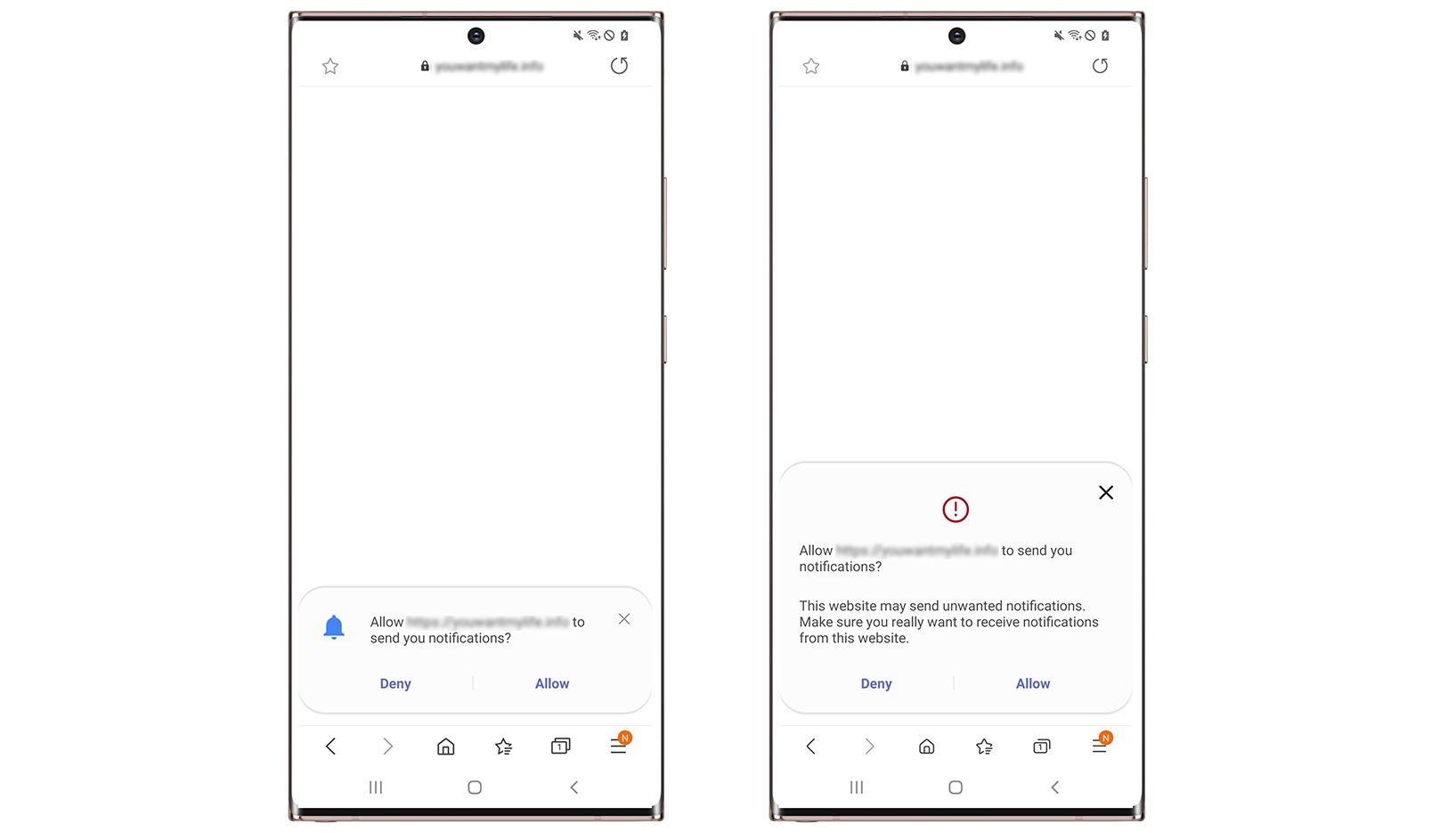من الصعب الوثوق هذه الأيام بمواقع الويب، والتمييز بين مواقع الويب الآمنة أو غير الآمن، وبالتالي تجنب تلقي إشعارات غير مرغوب فيها من مواقع ويب غير جديرة بالثقة، يحتوي متصفح Samsung Internet 13.0 على ميزة جديدة تقوم بإطلاق تحذير للمستخدمين، عند محاولة موقع الويب خداعهم وبالتالي البدء بإرسال الإشعارات لهم. ونظراً لمعرفتنا بأهمية الخصوصية بالنسبة للمستخدمين، فقد قمنا أيضاً بتضمين كل ما يحتاجون لمعرفته حول الوضع السري في الهواتف، والذي يمكنهم من مسح سجل التصفح الخاص بهم تلقائياً بمجرد إغلاق علامات التبويب، وذلك في قسم جديد مخصص للتعمق في مزايا وخدمات الوضع السري. كما تم تطوير رمز الوضع السري الجديد مع تثبيته بجوار شريط العناوين، بحيث يسهل التعرف على حالته (قيد التشغيل/مغلق).