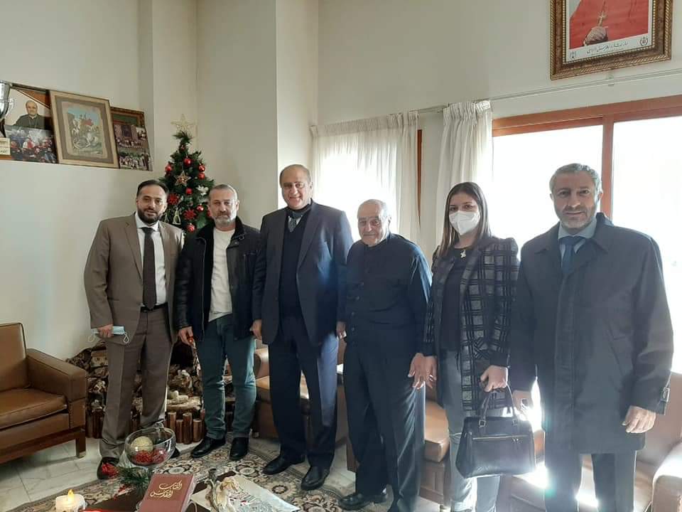 بعدها انتقل الوفد إلى بلدة القليعة والتقى المونسنيور منصور الحكيم ونقل الوفد ايضاً تحية رئيس التيار وتهانيه بالاعياد المجيدة وتم استعراض المراحل التاريخية والمواقف الوطنية منذ نشأة لبنان حتى يومنا الحالي والمعاناة في ظل الأوضاع الاقتصادية التي يرزح تحتها الشعب، وشدد الحكيم على ضرورة مساندة رئيس الجمهورية ورئيس التيار بمواقفهما الوطنية والجامعة.