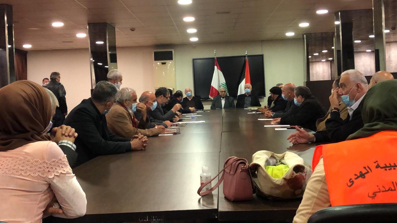 الأستاذ معن بشور منسق عام الحملة افتتح الاجتماع بكلمة جاء فيها: انعقد هذا الاجتماع اليوم في مقر سفارة فلسطين في ذكرى انطلاقة الثورة، له معنى خاص يتلخص في جوهره بتمسكنا بالأخوة اللبنانية الفلسطينية بوجه كثير من الخطب العنصرية والتي ندفع ثمنها غاليا وما حصل بالأمس مع الأخوة النازحين السوريين في عكار ، فالفاعل ليس فقط من اشعل النيران، انما الفاعل الحقيقي هو من اشعل الخطاب العنصري ضد السوري والفلسطيني وضد العربي واي شخص اخر، ثم ينتقل بخطابه ضد من هو غير لبناني الى خطاب طائفي ومذهبي داخل المجتمع اللبناني ضد اللبناني الأخر.