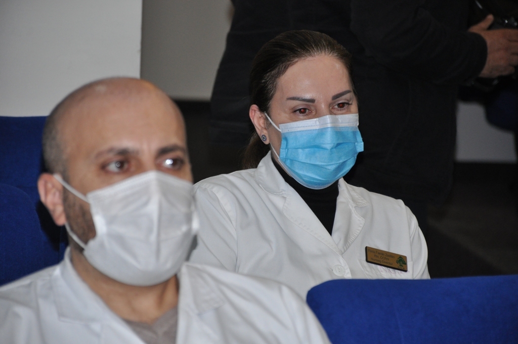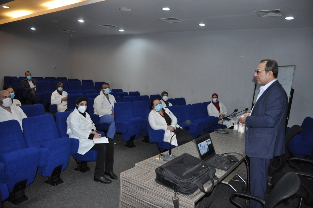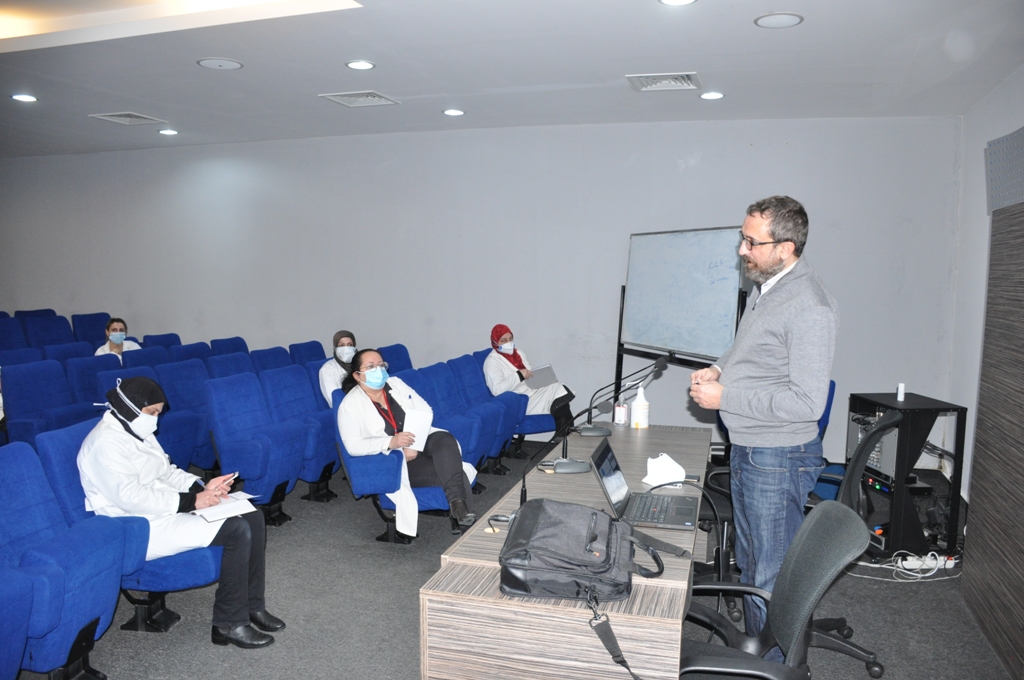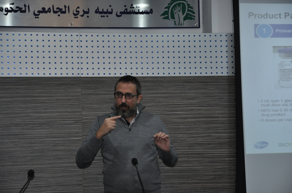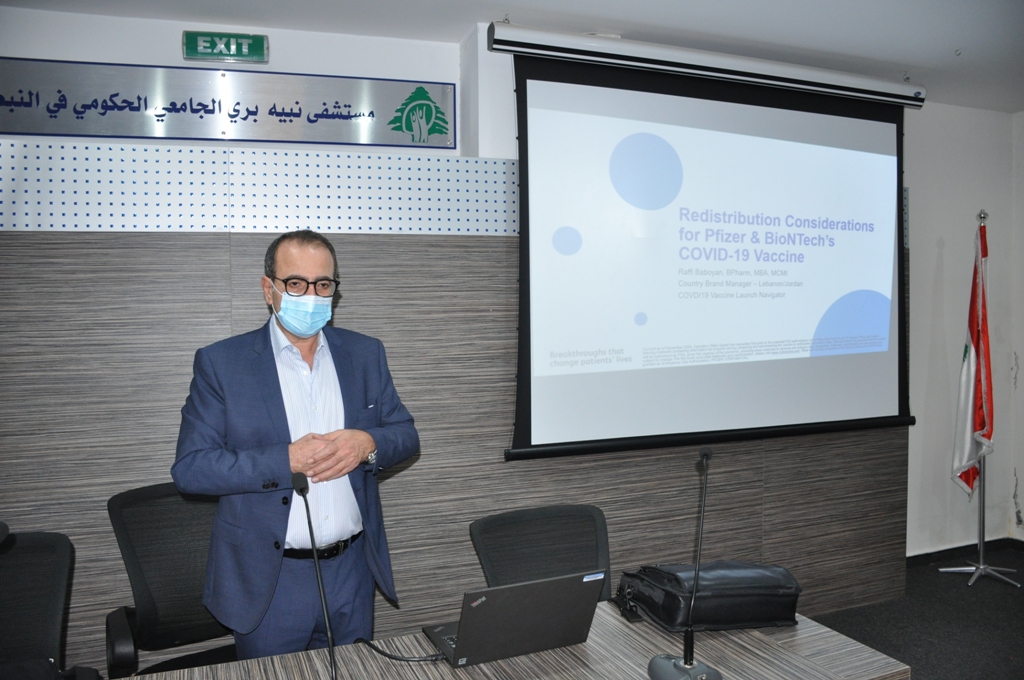 نظم مستشفى نبيه بري الجامعي الحكومي في النبطية ورشة تدريبية "للتوعية عن كيفية استعمال اللقاح عند الطواقم الطبية والتمريضية"، بين فريق من شركة "فايزر" والفريق الطبي والتمريضي المتخصص بقسم كورونا في المستشفى.
