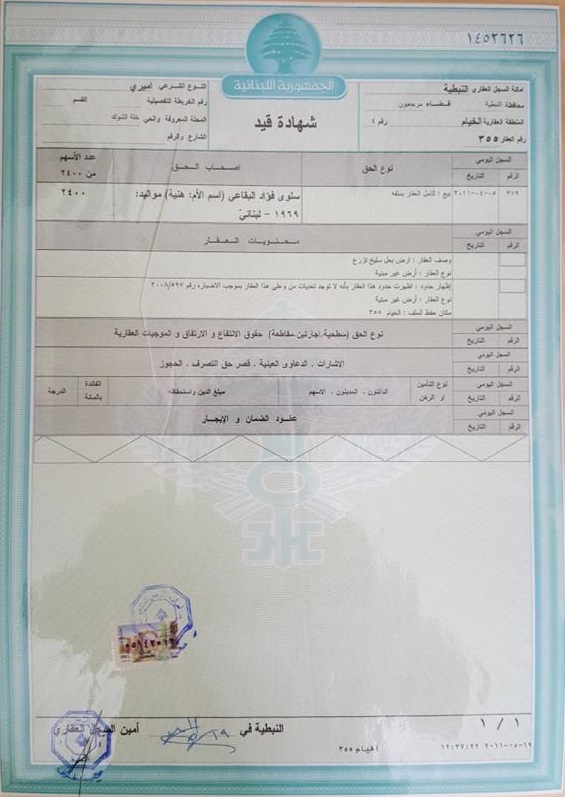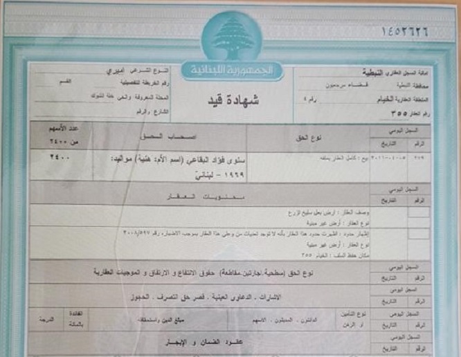 معروض للبيع قطعة أرض في الخيام، منطقة خلّة الشوك، قرب منزل عماد الأمين، تصلح للبناء، مساحتها 2200 متر مربع، تصلها طريق معبّدة.