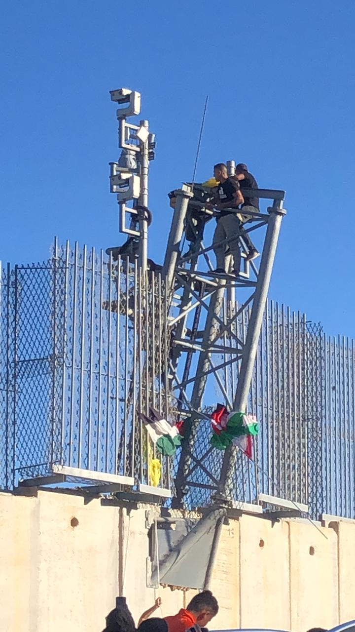 اطلق العدو الاسرائلي الطلقات النارية على المتظاهرين الذين قاموا بتسلق الجدار الفاصل على العبارة وقاموا بتحطيم كاميرات المراقبة المثبتة هناك وقاموا برفع العلم الفلسطيني وعلم حزب الله على السياج الموضوع فوق الجدار ورشق الحجارة فوق الجدار. واطلق السائقون ابواق سياراتهم استنكارا على اطلاق الرصاص.