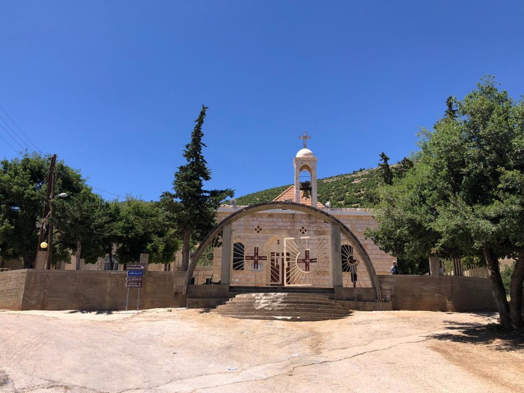 عائلة من لبنان (حبشي) مع منظر عام للبلدة من الجو