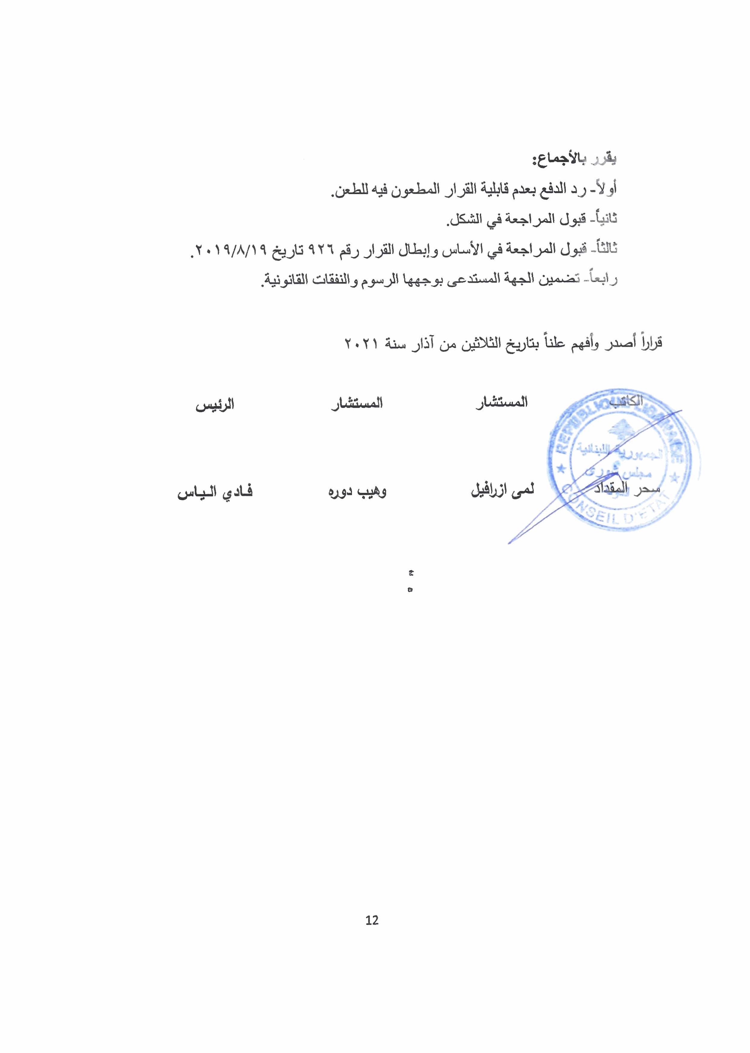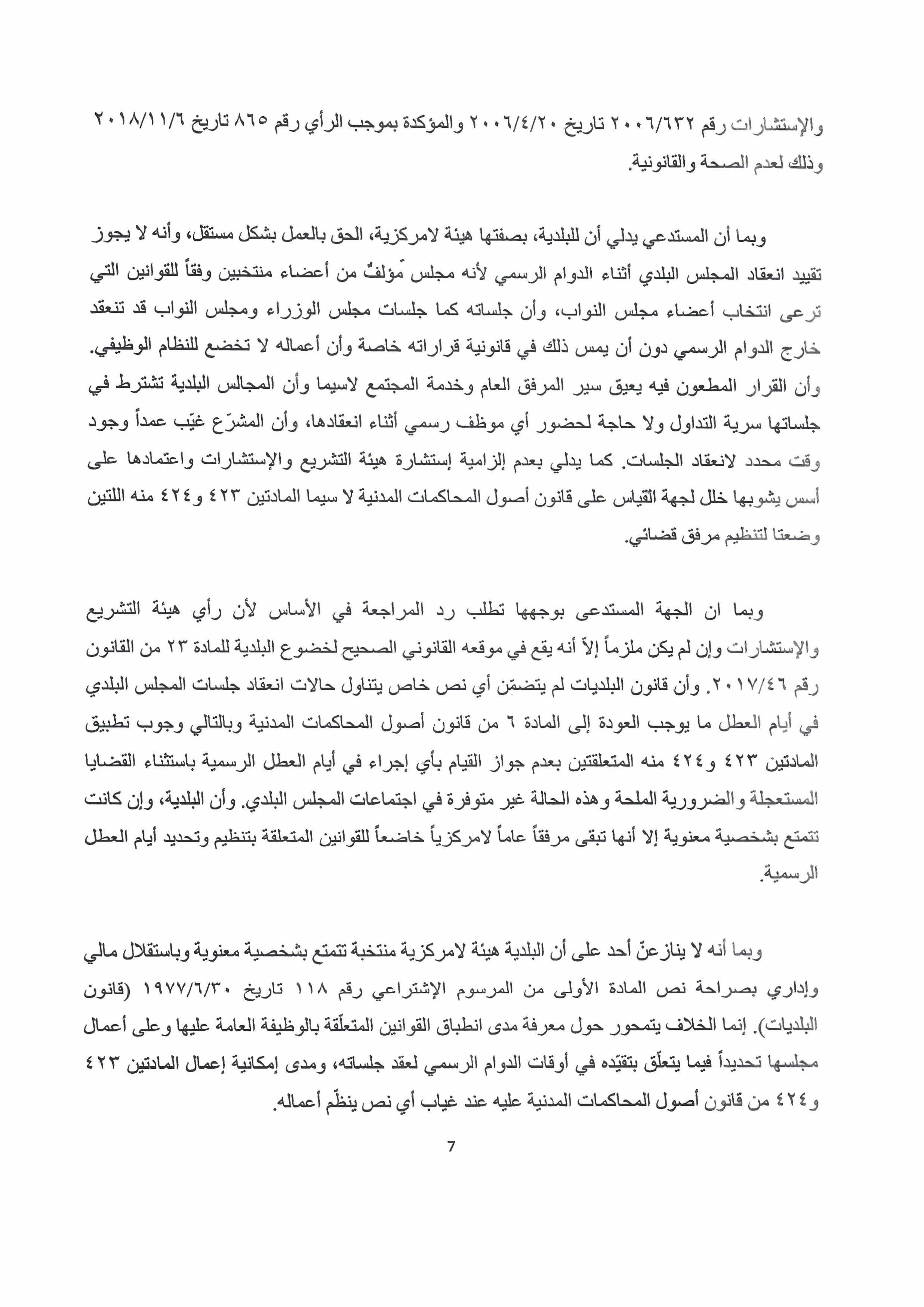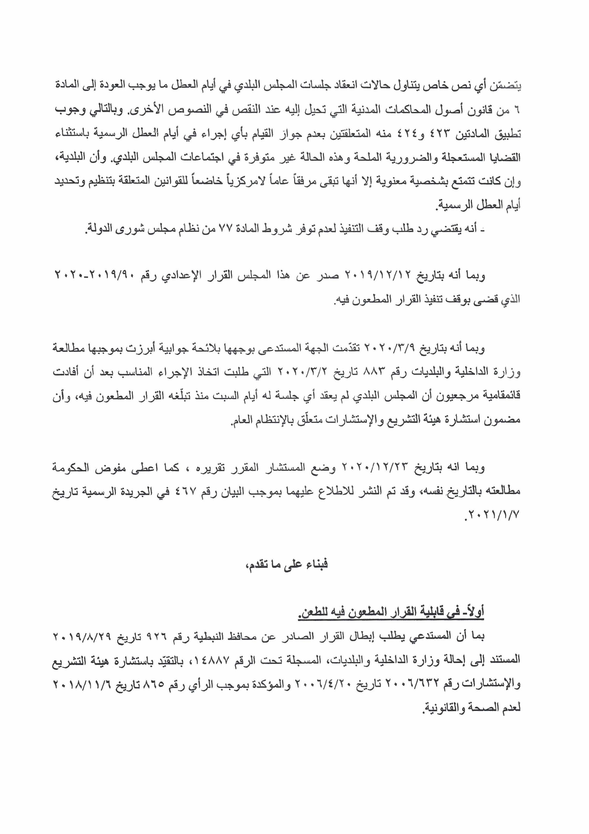 أدناه، صور القرار الصادر عن مجلس شورى الدولة