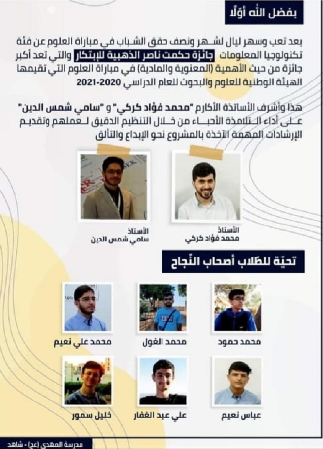 فريق عمل موقع "خيام دوت كوم" يتوجه بالتهنئة لجميع هؤلاء الطلاب المبدعين، (طبعاً بعض الفضل يعود أيضاً لإشراف أهلهم وأساتذتهم)، مع التمني لهم بالتألق الدائم، ونخص بالذكر إبن البلدة خليل عدنان سمّور.. فهذا الشبل من ذاك الأسد!