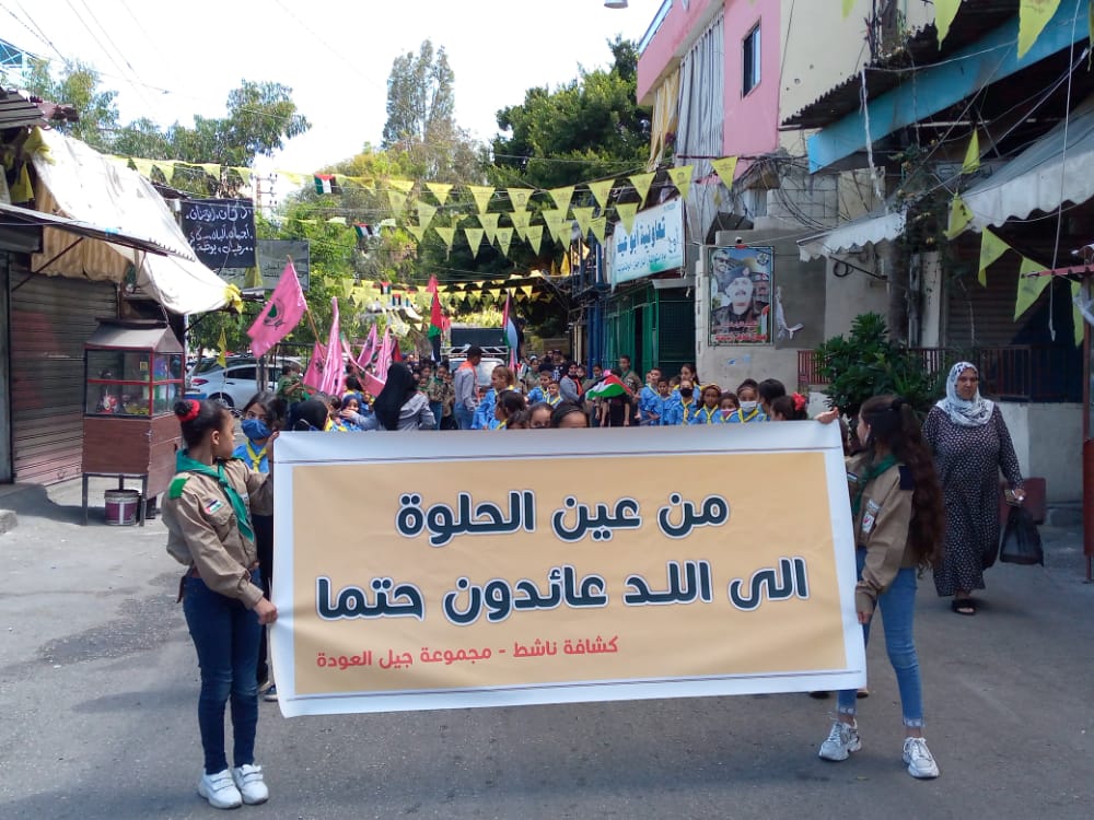 يذكر أن بداية المسيرة انطلقت بتحية كشفية أطلقتها منسقة فريق الشباب تضمنت تحية إلى أهل اللد والمناطق المحتلة كافة والذين مهدوا بانتفاضتهم إلى النصر الأكيد وأعادوا البوصلة إلى وحدة الشعب، وكسروا كل حواجز الانغلاق التي عمل عليها الكيان الغاصب طيلة ٧٣ عاما.