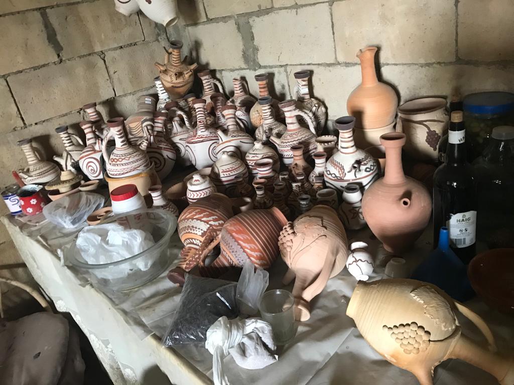 أما المصنوعات التي ننتجها فهي: أباريق، جرار، خوابي زيت، مزهريات، قجج، صحون، مقالي، قِدر وجاطات للطبخ والفواكهة.