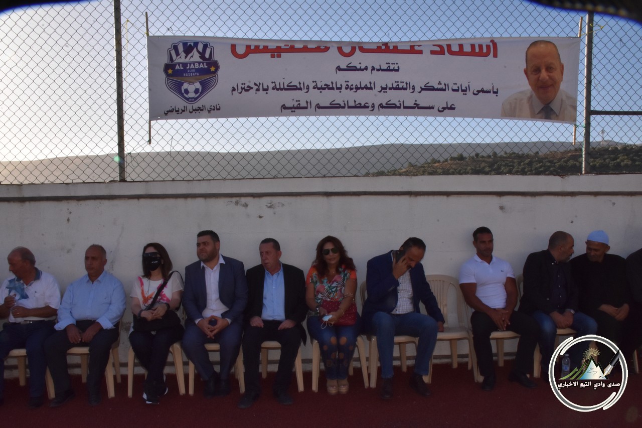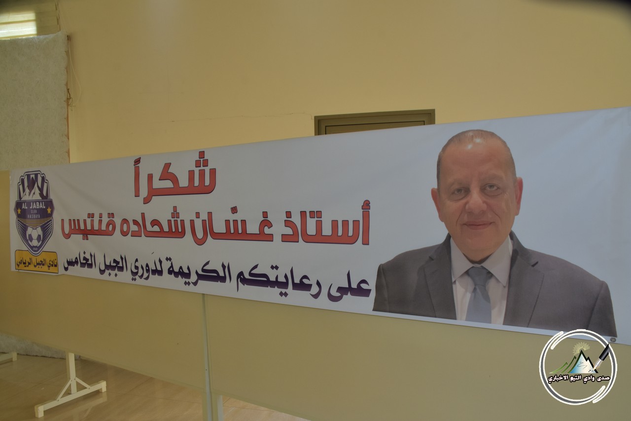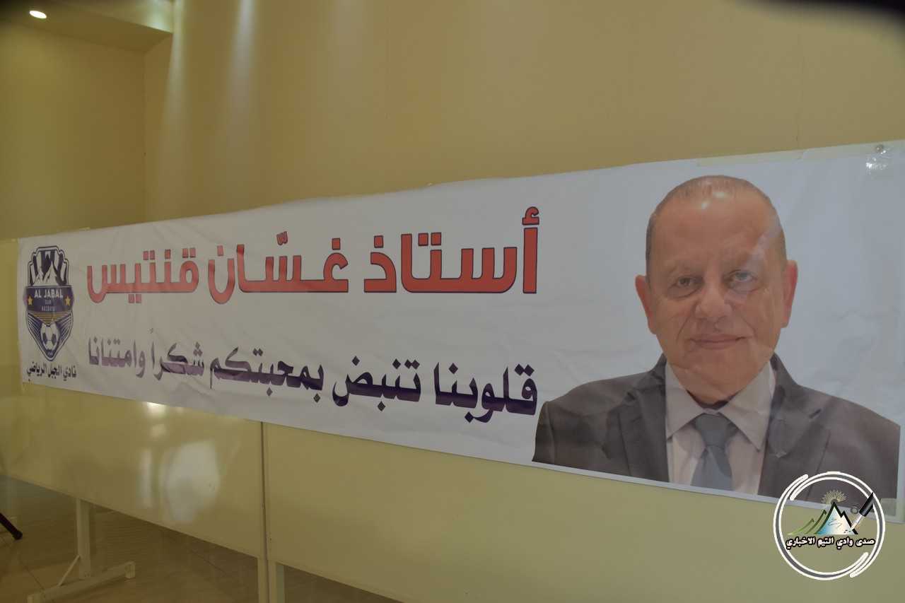 وختاما تسلم قنتيس درعا تكريميا من نادي الجبل الرياضي لصاحب الرعاية غسان قنتيس، ثم قطع المشاركون قالب الحلوى، واعلنوا انطلاق الدوري الرياضي الخامس وبدأت المباراة الرياضية الودية الاولى بين فريق نادي الجبل الرياضي ونادي الاخاء الاهلي عالية.