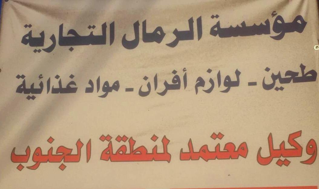 وفي ظل هذا الظلام الحالك الذي يخيم على سماء هذا الوطن المنكوب، كان لمؤسسة رمال للتجارة شهادة مشرفة جديدة في سجل الشرف والوفاء من أبناء هذا الجنوب ، هذه المؤسسة الرائدة في بيع الطحين ومشتقاته على مساحة الجنوب .
