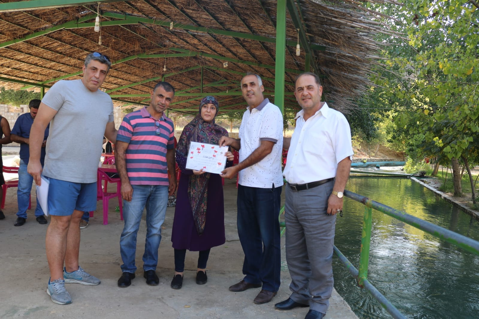 وحضور رئيس بلدية قعقعية الجسر المحامي هشام حلاوي مع أعضاء البلدية اضافة لضيفتي الشرف الفنانة نعمى بزي رئيسة منتدى الفن الراقي والفنانة ياسمين علامة وكانت رسومات لوحات مستوحاة من الطبيعية لنهر القعقعية للفنانين المشاركين اعضاء المنتدى.