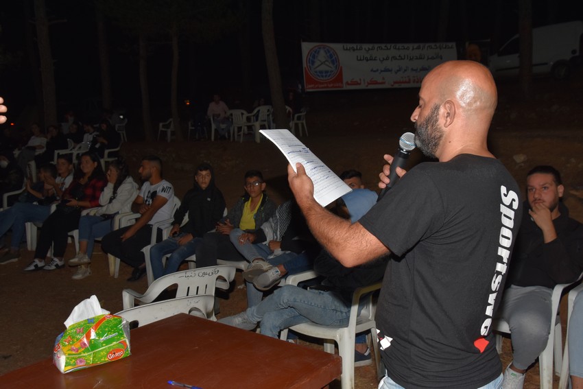 وبالمناسبة اقيمت سهرة نار وكانت قصائد شعرية نوهت بمزايا الاستاذ غسان قنتيس وبعطاءاته ودعمه لهذا النوع من الانشطة الترفيهية . وختاما سهرة فنية واغاني ودبكة لبنانية.