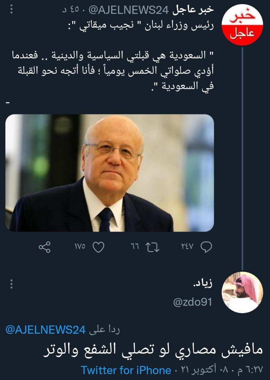 المملكة صرحت بأن ميقاتي بالنسبة لها كما الحريري .