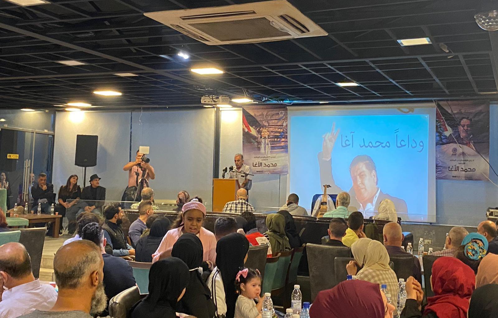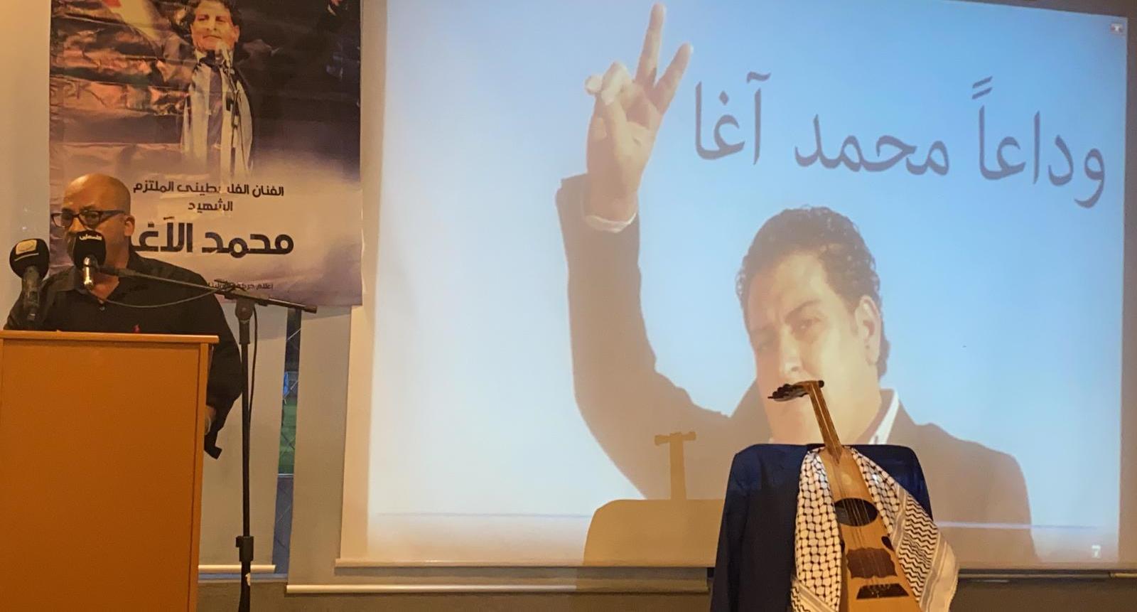 برعاية سفارة دولة فلسطين في لبنان، نظّم الاتحاد العام للفنانين الفلسطينيين في لبنان وسهرة النورس الثقافية حفل ثقافي تحت عنوان "تحية إلى الفنان محمد آغا" وذلك في صالة مطعم غزل في صيدا بحضور سعادة سفير دولة فلسطين في لبنان أشرف دبور مثّله الأستاذ خالد عبادي، عدد من قيادات حركة فتح في لبنان، ممثلون عن الفصائل الفلسطينية والفعاليات الاجتماعية، عدد من المثقفين وعائلة ومحبي الفنان الراحل محمد آغا.