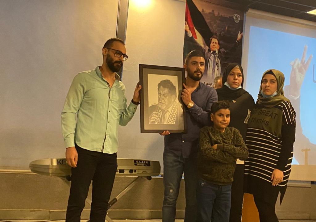 ثم ألقى خليل آغا نجل الراحل كلمة باسم العائلة شكر فيها كل من استذكر والده مؤكداً أنه واخوته سيبقون على نفس الطريق الوطني الذي سلكه والدهم وستبقى فلسطين هي الأم التي ستحتضنهم دوماً، ثم قدّم الفنان التشكيلي أحمد الدنان لوحة لعائلته رسمها بريشته للفنان الراحل.