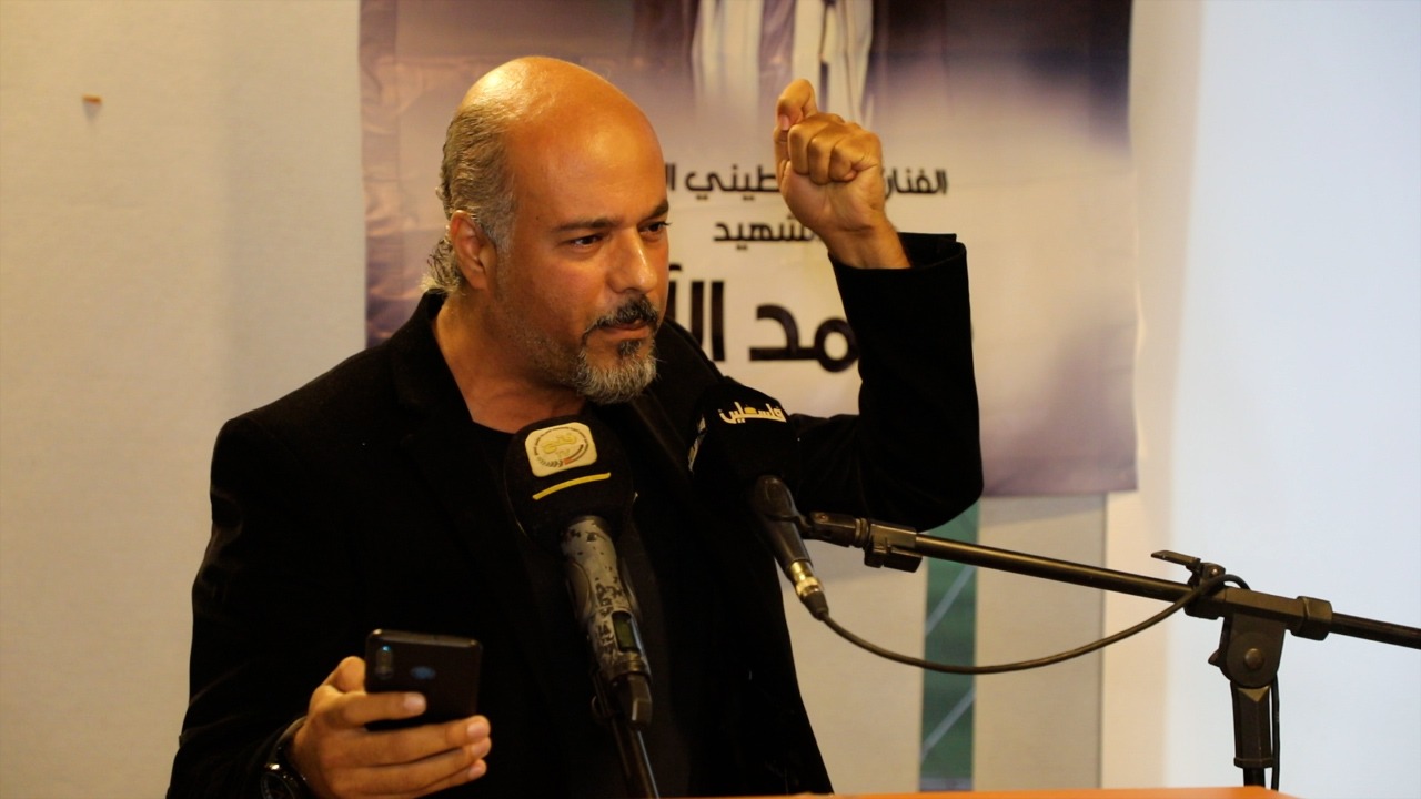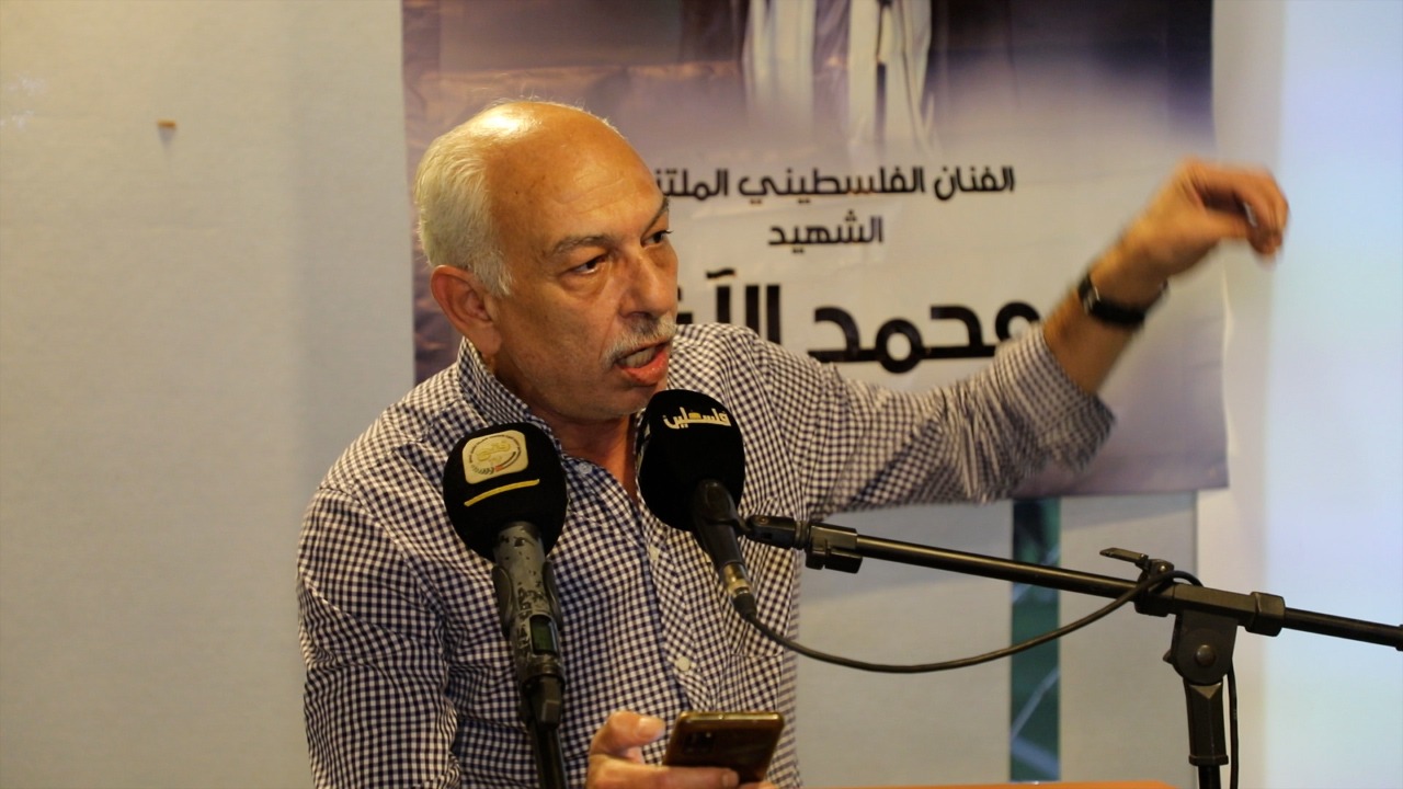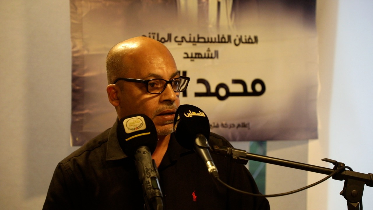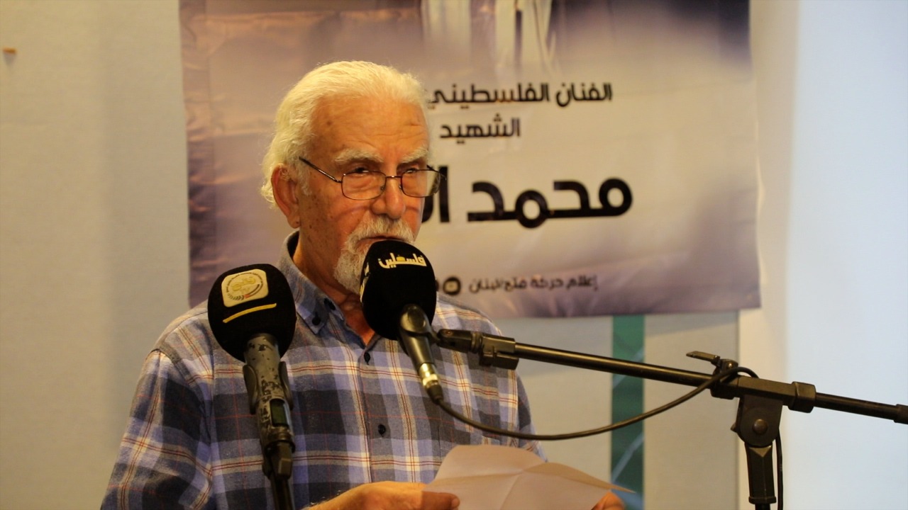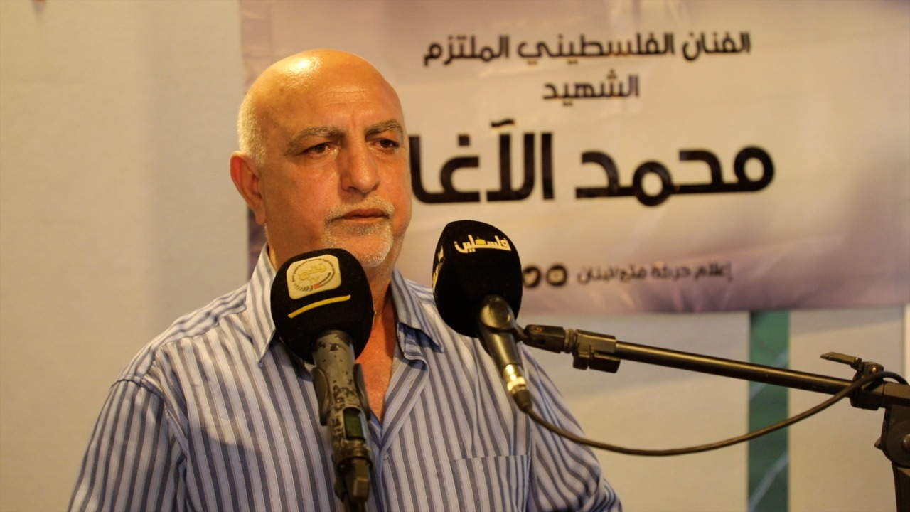 رئيس الاتحاد العام للفنانين الفلسطينيين في لبنان المخرج محمد الشولي كانت كلمته من نوع آخر حيث تحولت إلى مشهدية استحضر فيها الفنان محمد آغا ليحدثه ويهدي سلامه إلى أصدقائه ومحبيه.