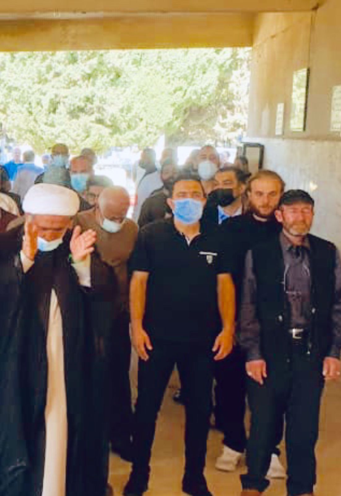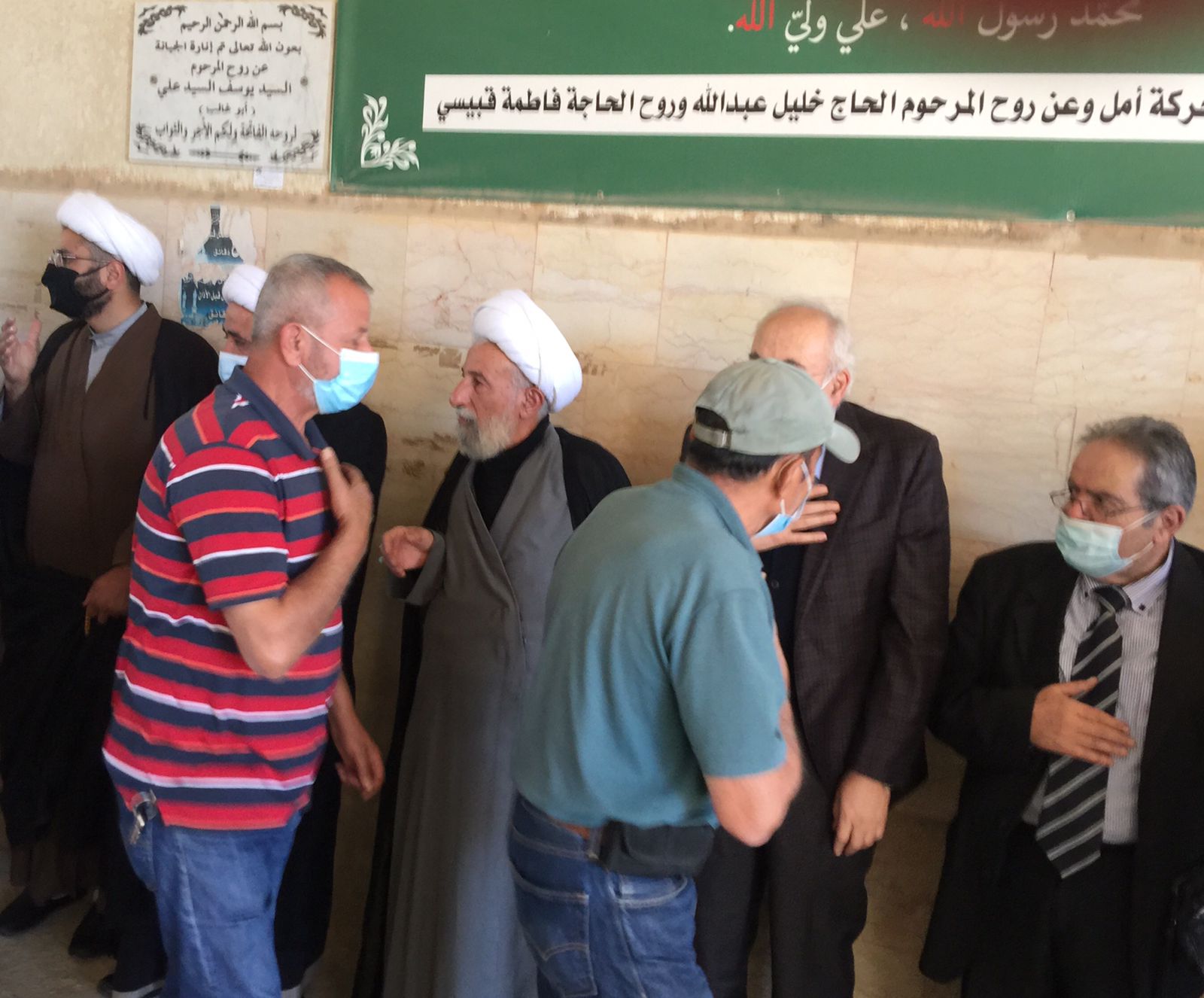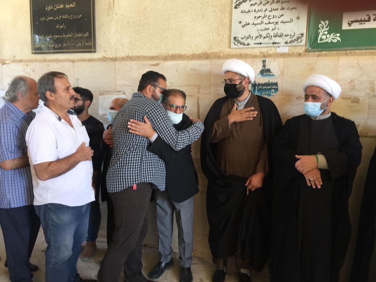 وقد أمّ الصلاة على الجنازة سماحة الشيخ عبدالله الحاج عباس عبدالله (ابن عم الفقيد) وبحضور فضيلة الشيخ محمد باقر عبدالله، وفضيلة الشيخ حسين عبدالله عبدالله، وجمع غفير من أبناء العائلة يتقدمهم نجلا الفقيد وأحفاده، وأبناء أشقائه وشقيقاتها، وأبناء عمومته وعماته، وأنجال أخواله وخالاته، وبقية رهط الفقيد، وعموم أهالي بلدة الخيام ولفيف من الذين يرتبطون بصلة رحم مع الفقيد سواء عن طريق النسب أو المصاهرة من مختلف أصقاع قرى الجنوب والبقاع وبالأخص قضائي مرجعيون وبنت جبيل.
