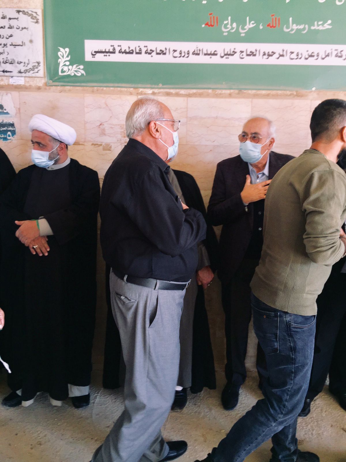 ومن ثم اصطف اصحاب السماحة والفضيلة الشيوخ الكرام بجانب نجلي الفقيد وأحفاده والانسباء يتقبلون صادق المواساة وأليم العزاء من الجمهور الكريم الوفيّ الذي أبى الا ان يصحب الفقيد لأخر لحظة له في هذه الدنيا الفانية.
