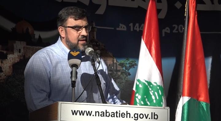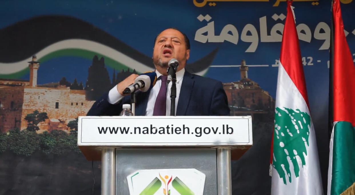 وألقى رئيس بلدية النبطية الدكتور احمد كحيل كلمة توجه فيها الى الاسرى والمعتقلين في سجون العدو الذين هم شرف هذه الامة وعزتها وانتم الصامدون صمود الجبال في زمن يتهاوى البعض ويتسابق للتطبيع مع الاحتلال وانتم المنتصرون بإذن الله رغم كل الظروف الصعبة واساليب الضغط وانتم الصخرة التي تتكسر عليها كل المؤامرات