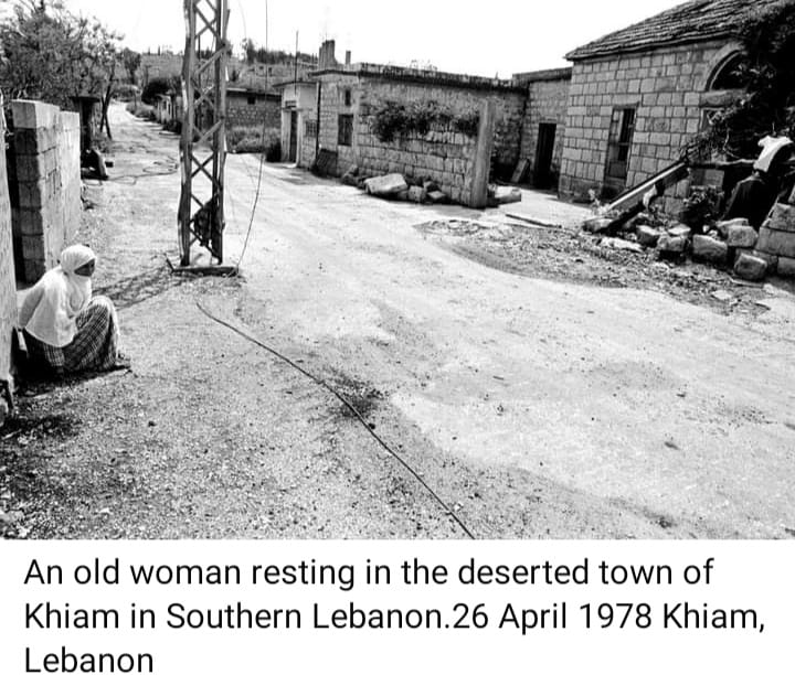 صورة تعود الى فترة الإحتلال الصهيوني البغيض للخيام حيث تظهر الحاجة شريفة السيد علي صامدة أمام دارها على خط عام الخيام المؤدي الى المعتقل.. ويظهر في الصورة منزل المرحوم محمد جمعة القرميدي وطريق خالية من الحياة باستثناء تلك الجالسة بقداسة تروي للأعداء بصمتها المدوِّي «أن الخيام لنا بارضها وسمائها وبحجارة منازلها وقرميد أسقفها وبتاريخها ومستقبلها.. وكل جحافل غدركم ومكركم وجبروتكم لن ينالوا منا وسننتصر».