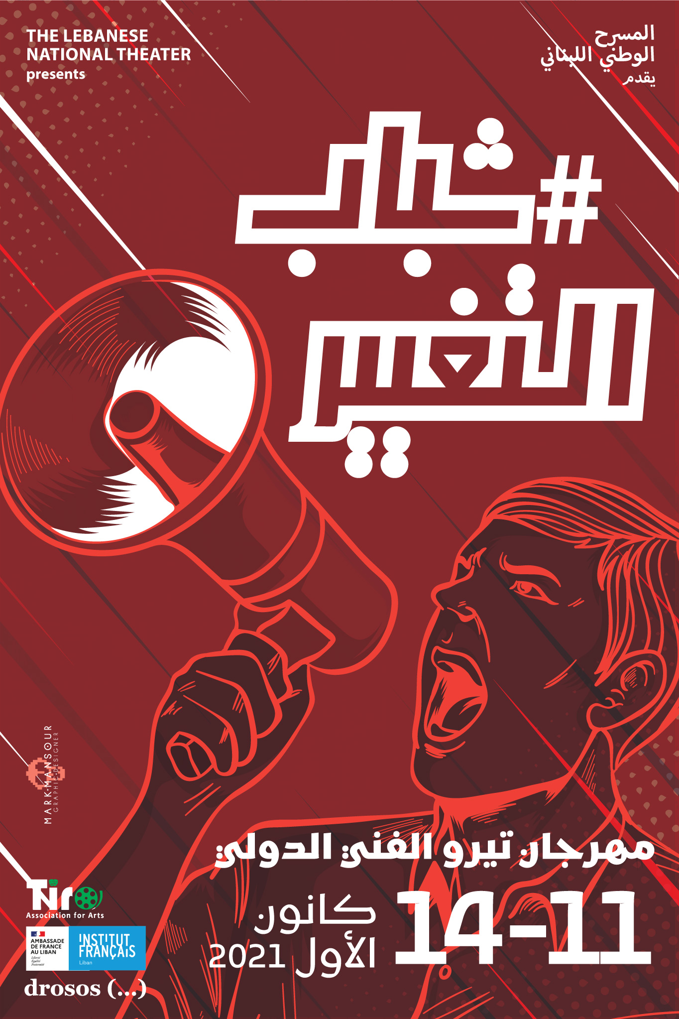 أعلنت "جمعية تيرو للفنون" و"مسرح إسطنبولي" عن إقامة "مهرجان تيرو الفني الدولي" بدورته الرابعة تحت شعار"شباب التغيير" في الفترة الممتدة من 11 ولغاية 14 كانون الأوَّل/ديسمبر في المسرح الوطني اللبناني في مدينة صور، بمشاركة عروض مسرحية وسينمائية من 17 دولة هي فرنسا وبلجيكا وألمانيا وتونس والعراق واليابان وإيران والمملكة العربية السعودية وليبيا وإيطاليا وإسبانيا وكوريا واليونان وسوريا والبرازيل وفلسطين لبنان، ويهدف المهرجان الذي يعتبر تجمعاً فنياً سينمائياً ومسرحياً وموسيقاً الى التلاقي والتبادل الثقافي والفني من خلال العروض والورش التدريبية الفنية والندوات بالشراكة مع مؤسسة دروسوس السويسرية .