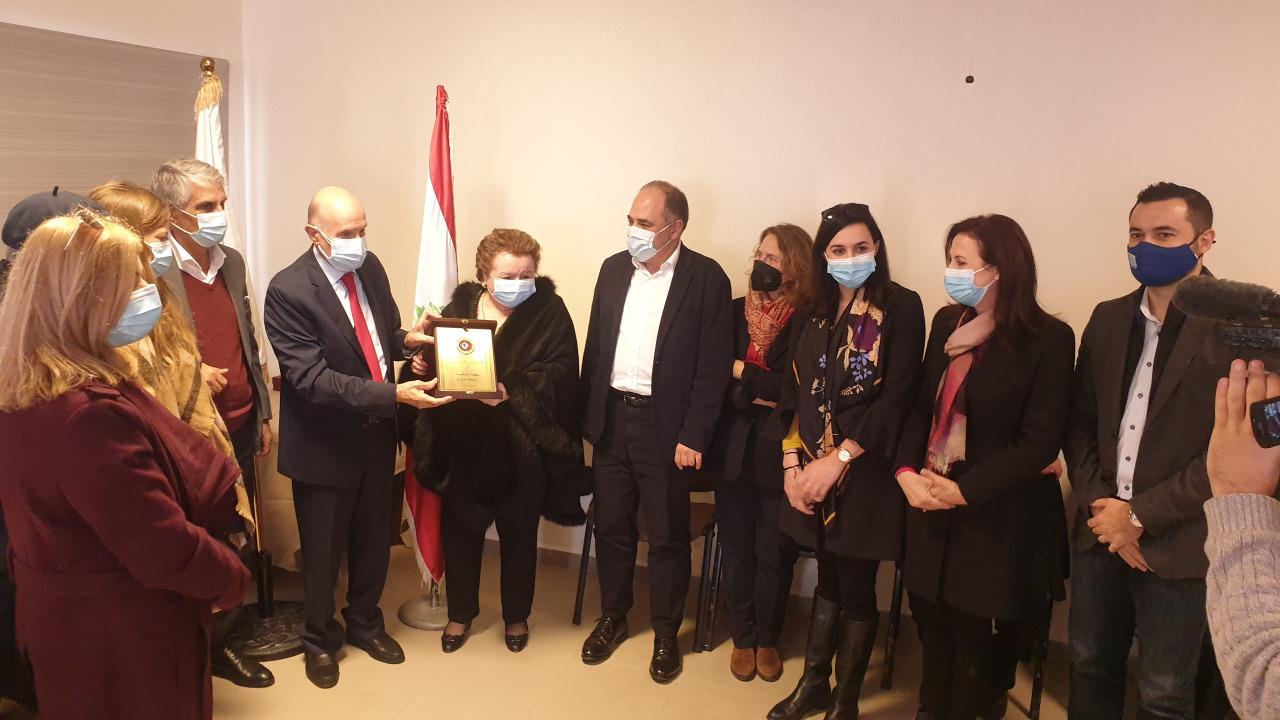 وفي الختام قدم الدكتور مهنا دروعاً تقديرية لكل من السفيرة عيدي ونجلها المهندس رامي عيدي والمهندس أيمن عواضة واختتم اللقاء بحفل كوكتيل على شرف الحضور، كما قامت السفيرة عيدي والدكتور مهنا بزراعة شجرة أرز في حديقة المركز.