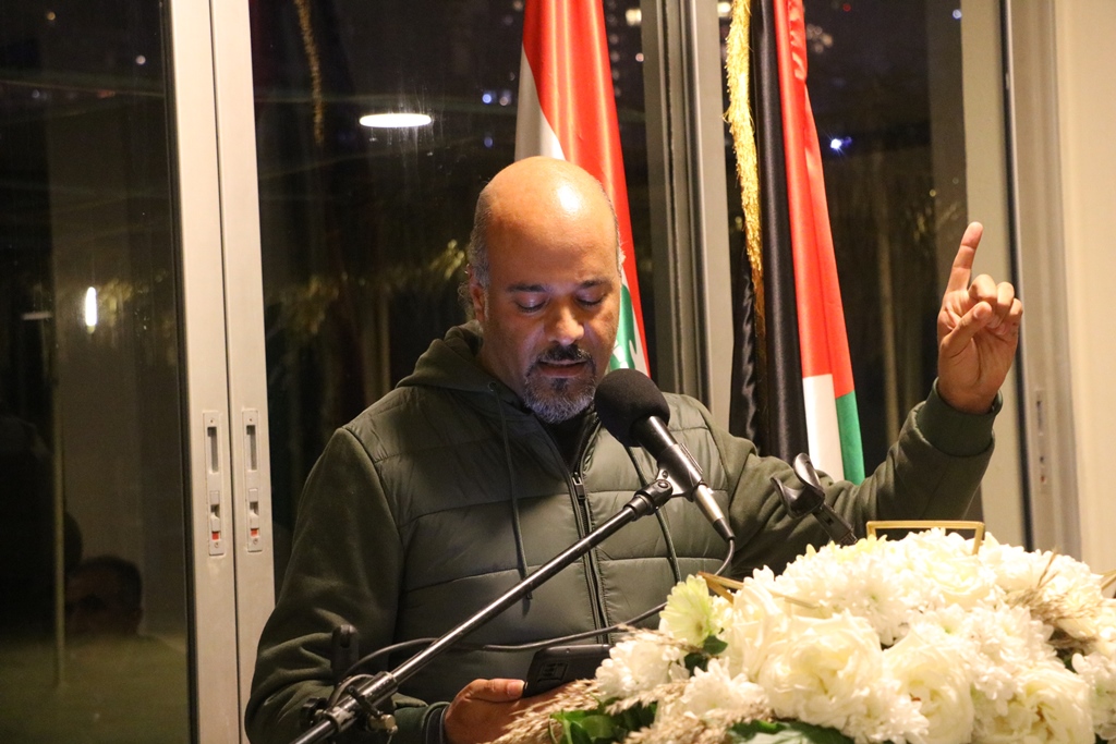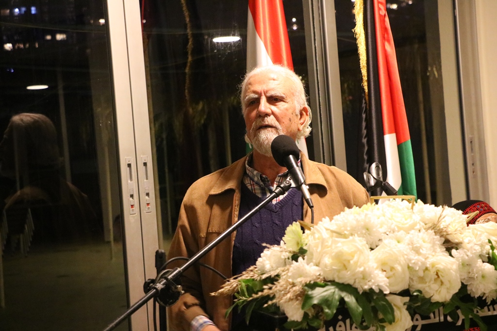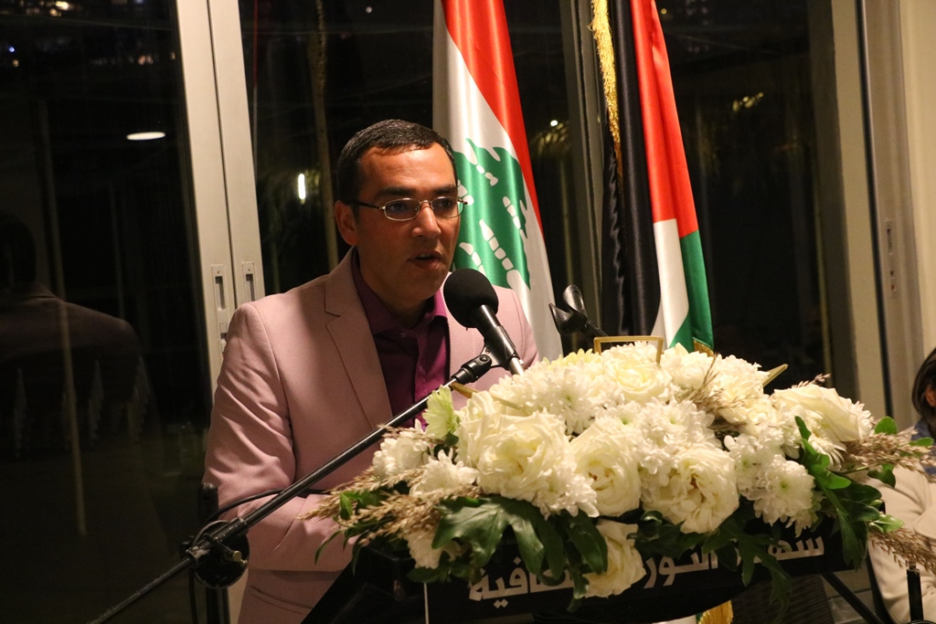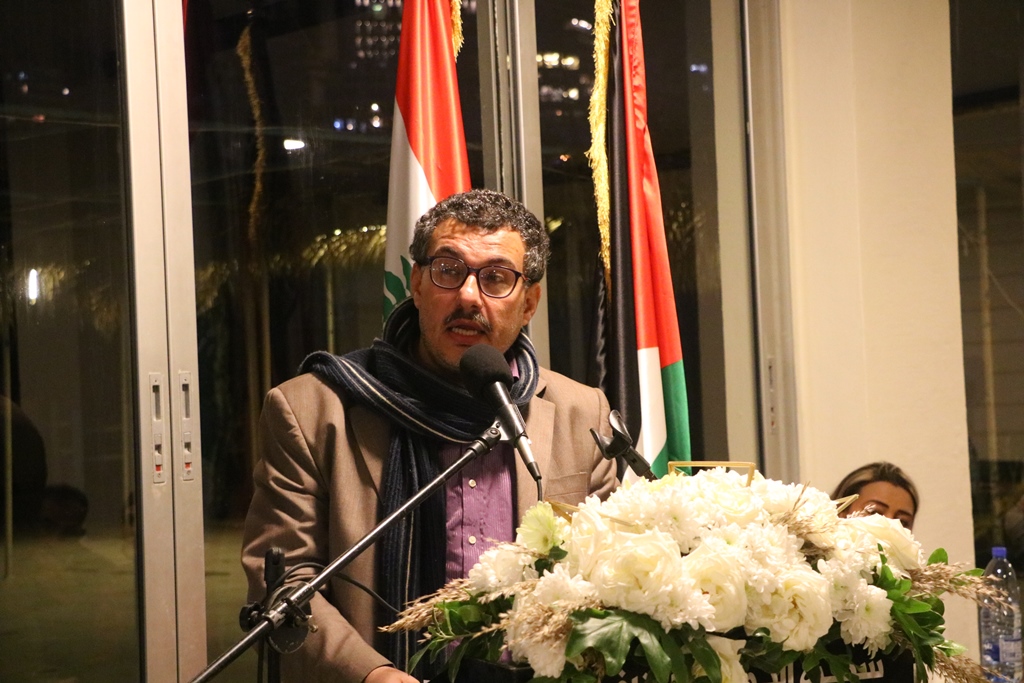 كلمة سفارة دولة فلسطين في لبنان ألقاها خالد عبادي وقال: لا يسعني إلا أن أرحب بمعالي وزير الثقافة اللبناني الذي لمسنا عبر كلماته روح وعبق فلسطين في كل ثنايا كلماته، وأود أن أشكر سهرة النّورس الثقافية وأبارك لهم مرور عشر سنوات على تأسيسها وأعتبر هذه السهرة أصبحت ركن أساسي في الثقافة الفلسطينية في لبنان، بل هي الوجه الحضاري الذي نعتز به جميعاً، وهذا الوجه الحقيقي للشعب الفلسطيني على الرغم من كل المآسي وكل ما نتعرض له، ولكننا باقون على ثقافنا ونعتز بالتمسك بها.